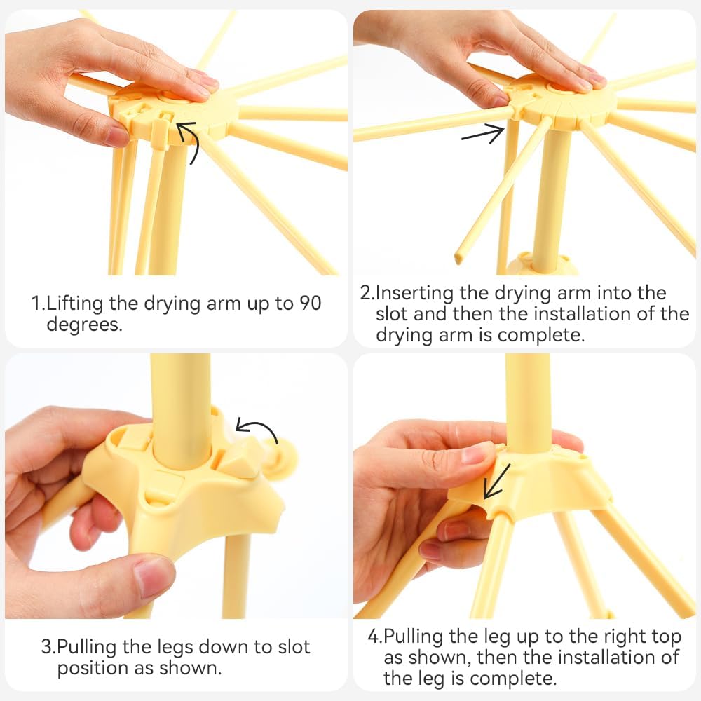 - Stable Base & Secure Locking System β Features 4 non-slip support legs and a one-pull locking mechanism. Simply unfold, snap the rods inward, and enjoy wobble-free drying. No complicated assemblyβready in seconds!