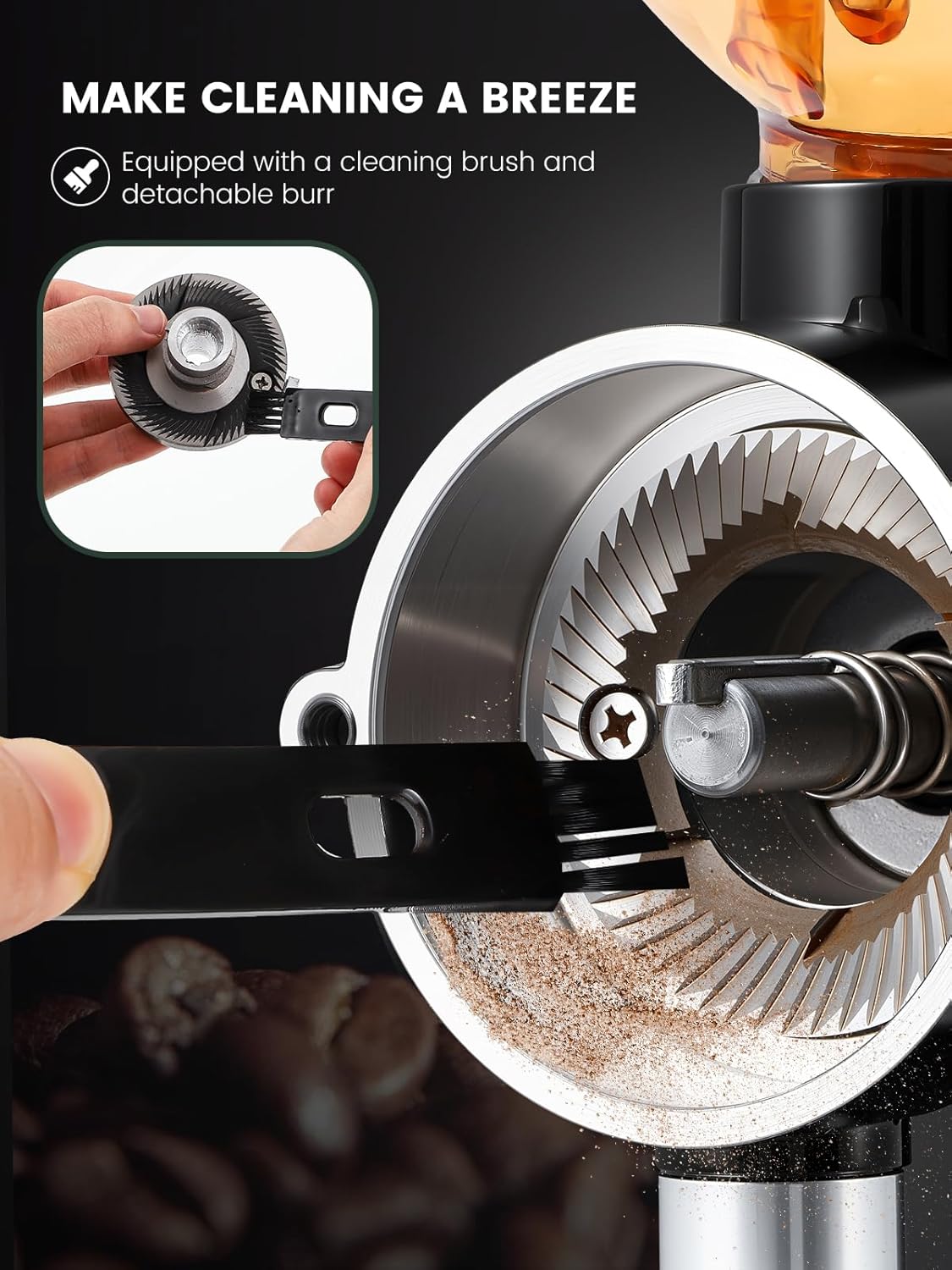 - [8oz bean hopper] Precision Capacity with light-blocking material and anti-jumping design ensures fresh, waste-free grinding for single servings—beans stay protected from oxidation and erratic spills, delivering consistency in every grind