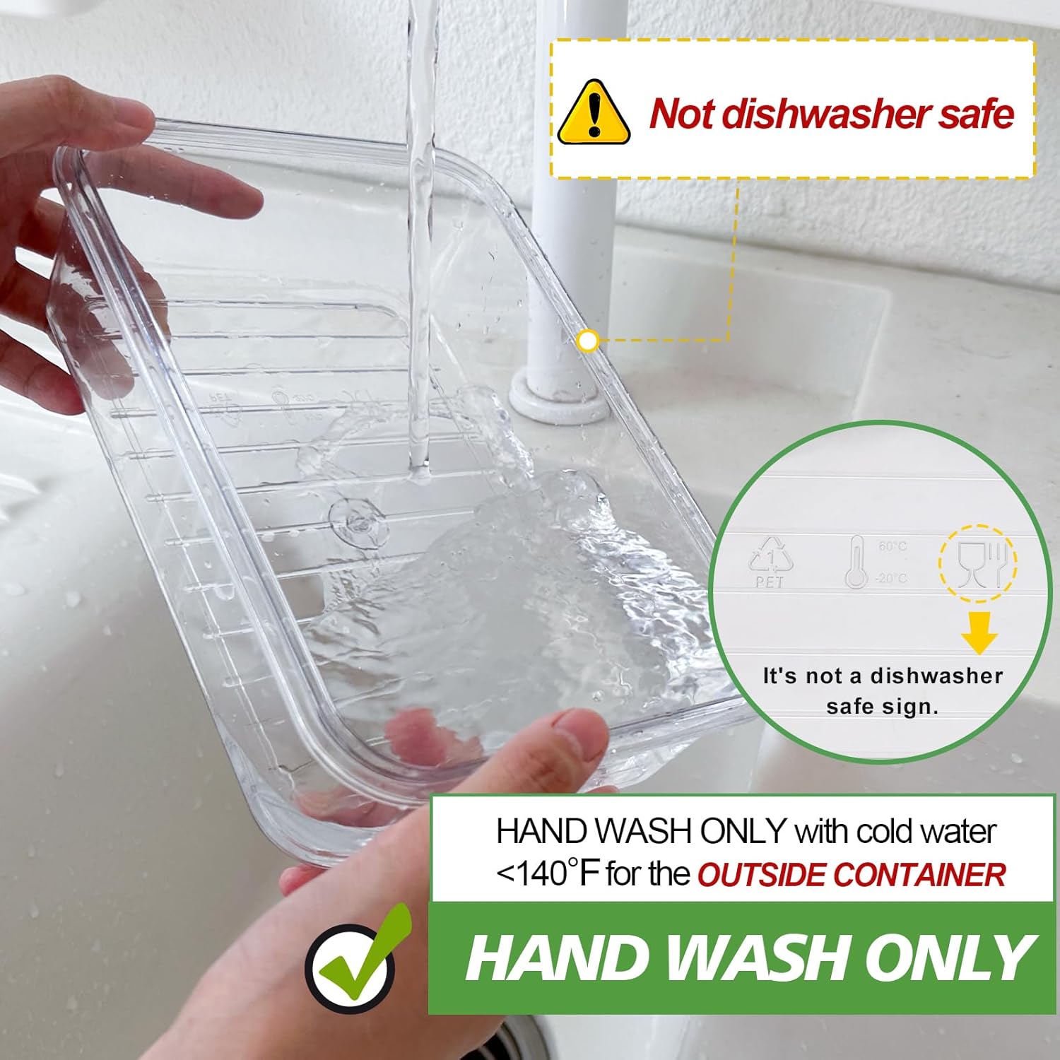 - NOTE: ONLY INNER DIVIDERS ARE DISHWASHER SAFE. The outer container and lid need hand wash with water below 60 ° C( 140℉).