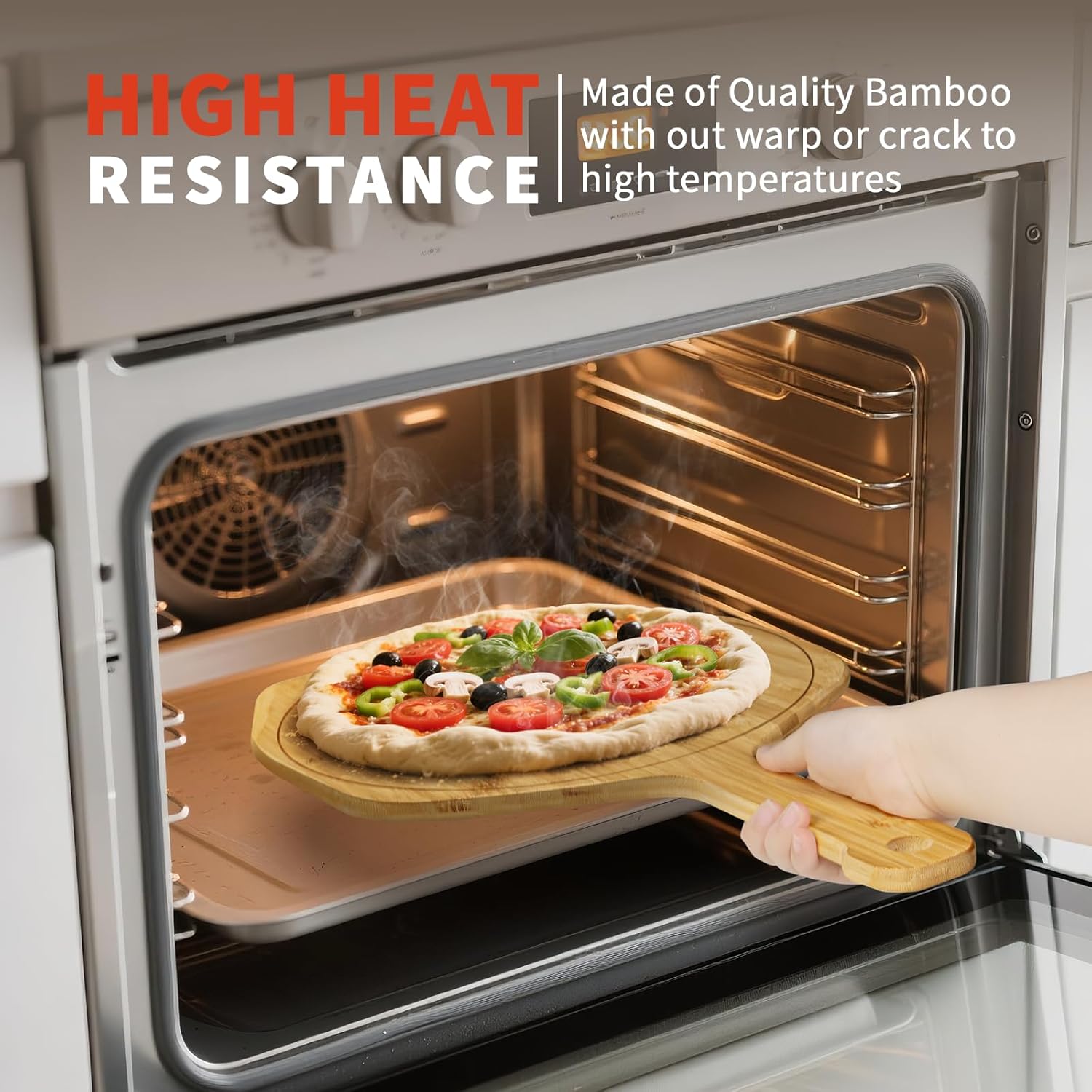 - ăPremium Natural Bamboo Pizza PeelăCrafted from premium, eco-friendly bamboo, this lightweight yet sturdy pizza peel is gentle on pizza stones and pans. Its smooth wooden surface helps prevent raw dough from sticking, making it perfect for effortlessly transferring pizzas or bread. With fine craftsmanship and a natural finish, it's both a practical tool and a beautiful addition to any kitchen.