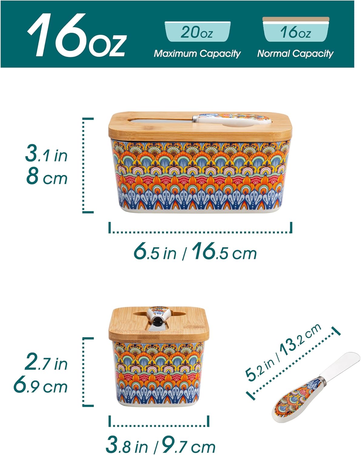 - 【Vibrant and Colorful Designs】vancasso bohemian style Butter Dish with Lid boast enchanting and intricate designs that capture the free-spirited essence of Bohemian culture. The lively colors and artistic patterns evoke a sense of joy and positivity, enhancing your dining experience with a burst of energy and happiness.