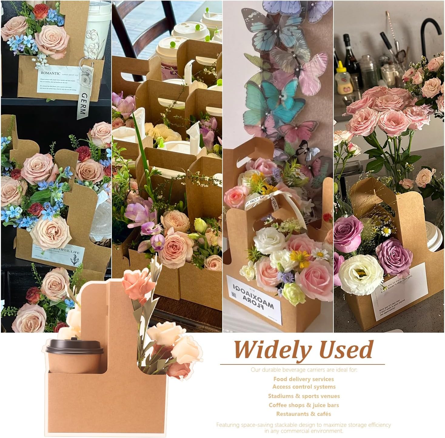 - Sturdy Cardboard Drink Carrier To Go – Durable paper withstands humidity and heavy loads. Use for beverages, snacks, or small gifts. 100-pack bulk order cuts costs for cafes, bakeries, and catering services.