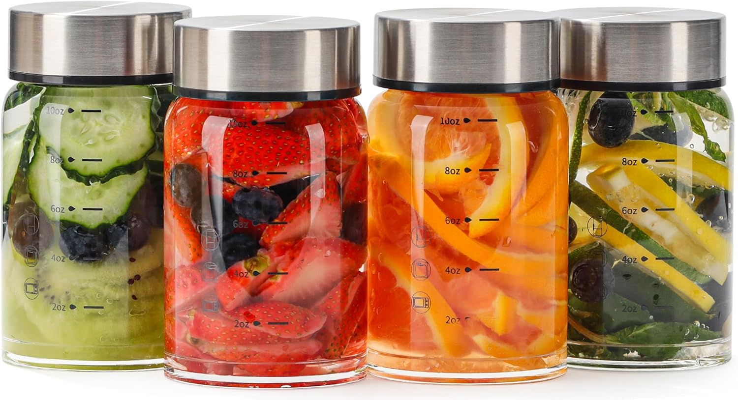 10oz Glass Juice Bottles – 4 Pack Reusable Wide Mouth Bottles with Stainless Steel Lids & Cleaning Brush, BPA-Free Water Bottles for Juicing, Smoothies, Milk, and Protein (300ml)