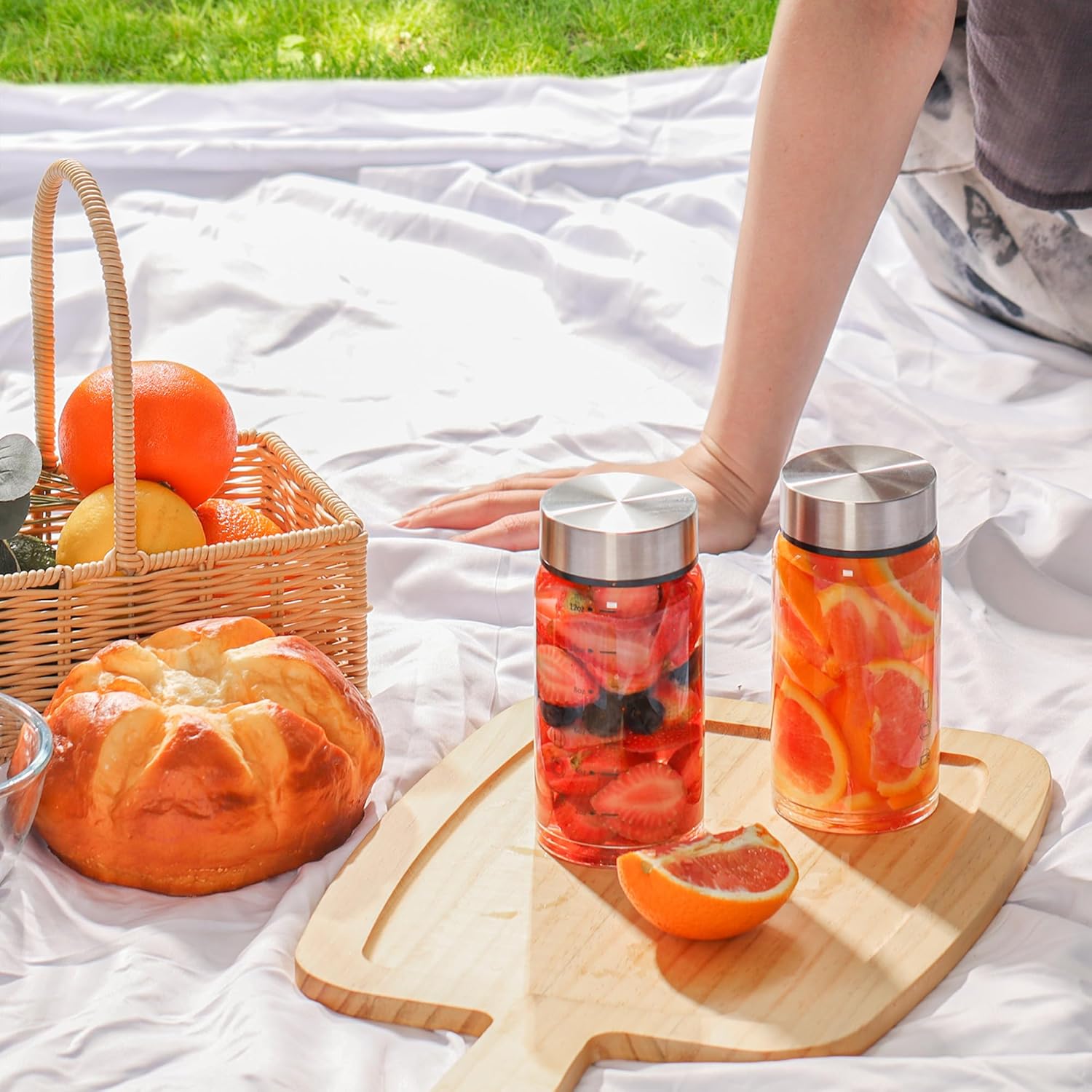 - LEAKPROOF & TRAVEL-READY LIDS: Each juice bottle features a stainless steel lid with a food-grade silicone ring that ensures airtight, leakproof sealing. Carry them confidently in your gym bag, backpack, or car.