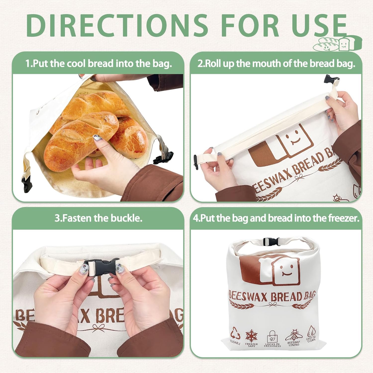 - NATURAL MATERIALS: Made with cotton fabric treated with food-safe beeswax coating prevents drying,waterproof barrier that retains moisture, extending breadβs freshness and shelf life