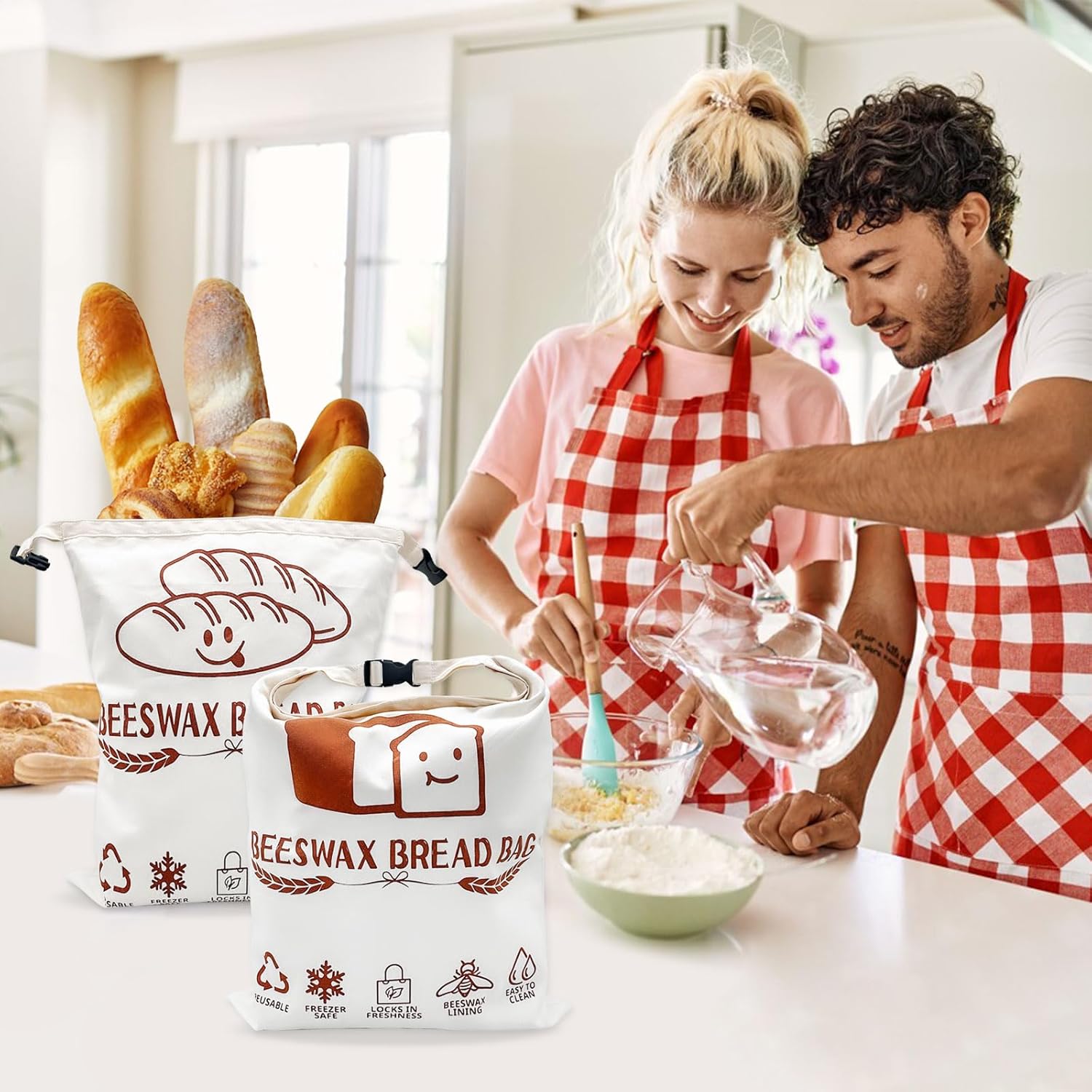 - REUSABLE DESIGN: Set of 2 beeswax-coated cotton bread bags perfect for storing homemade sourdough and other breads while keeping them fresh longer