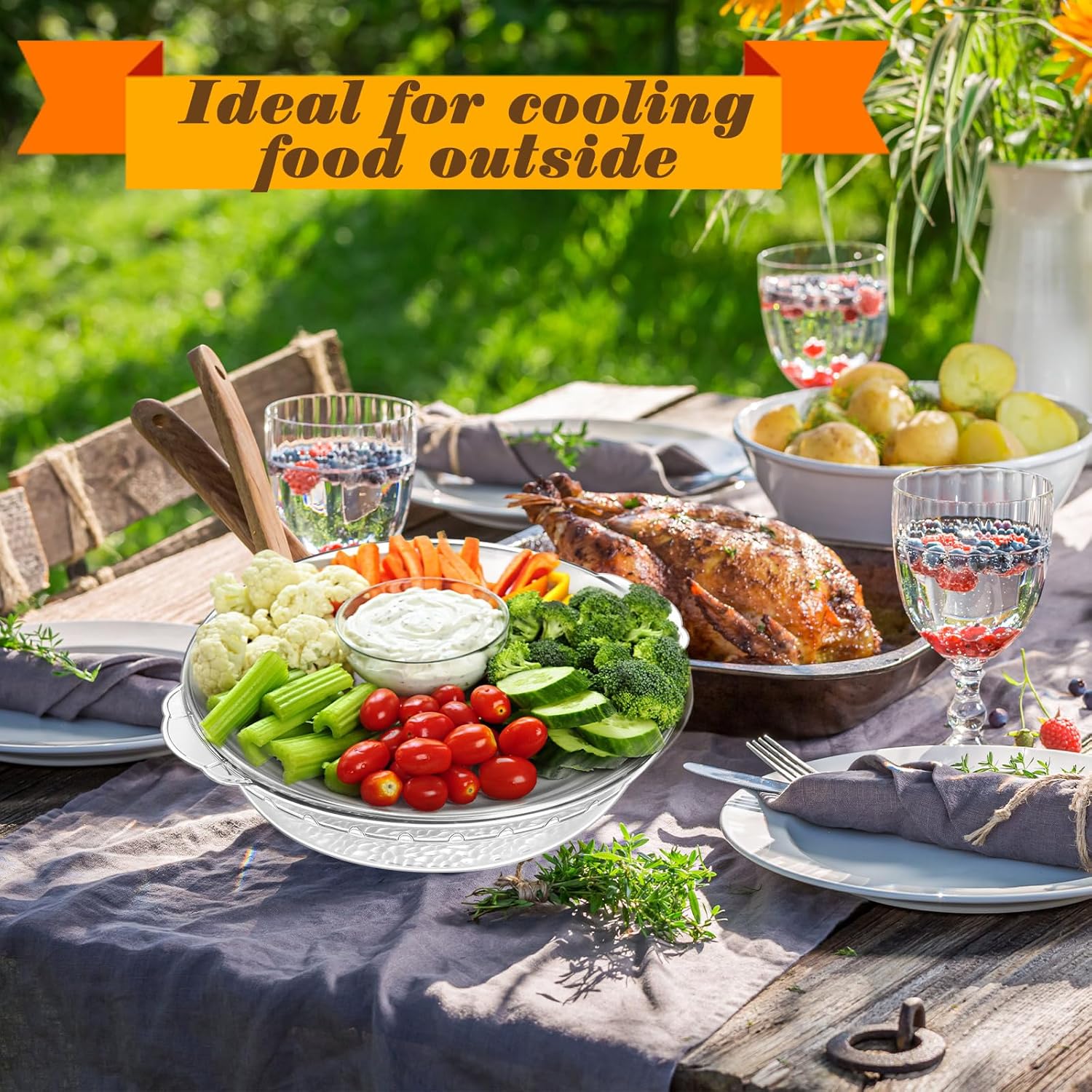 - Versatile Usage: this veggie trays for serving for party is suitable for family gatherings, company events, cookout, BBQ, picnic, camping; Elegant looking food cooler for any type of indoor or outdoor parties; Ideal for cooling food outside