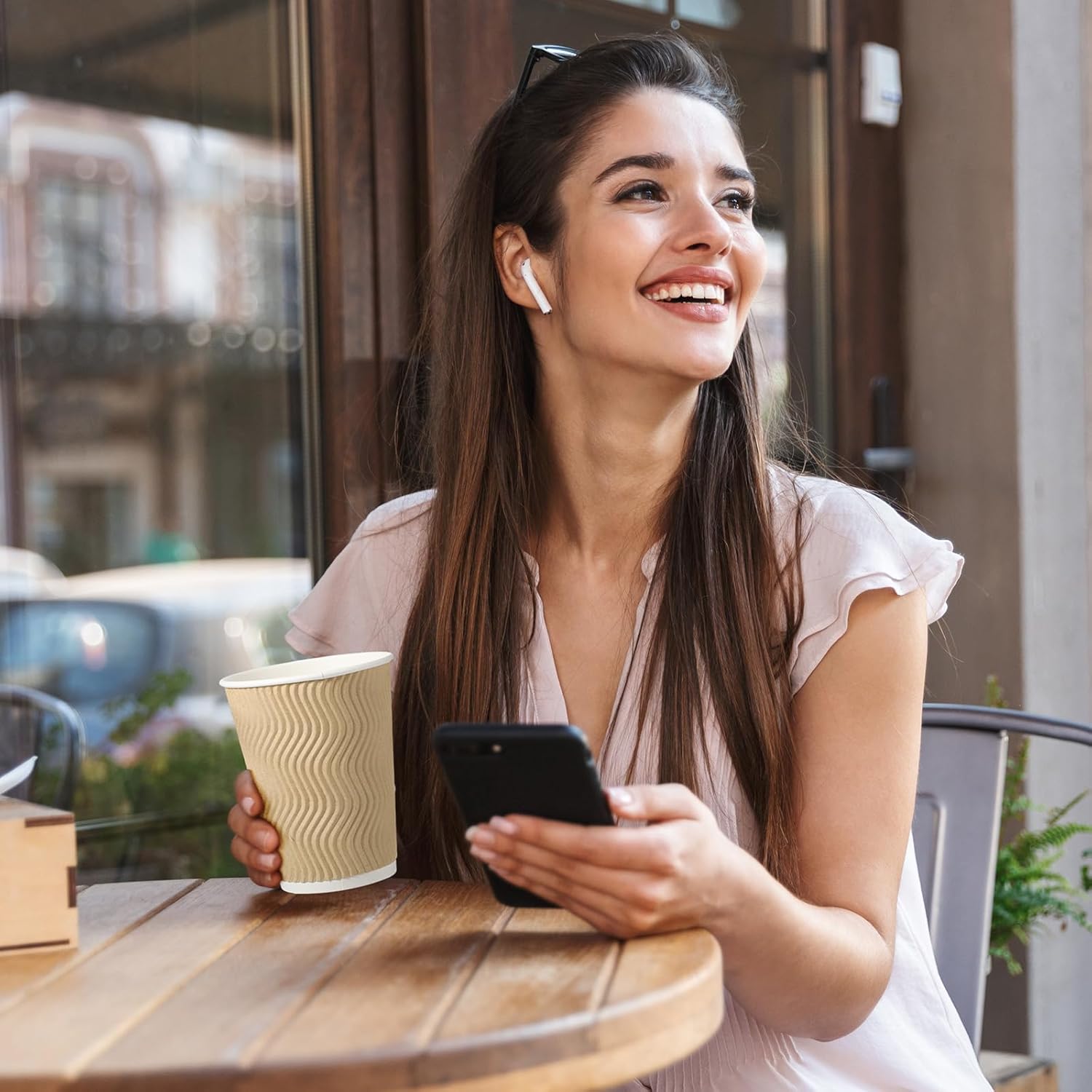 - Insulated Disposable Coffee Cups Design: disposable coffee cups 12 oz are elegant and minimalistic; The S shape pattern elevates the look of your home brewed coffee; With this sleeveless kraft paper hot cup, there is no need for waste of double cups or sleeves; The 3 layers rippled wall keeps the cup cool to the touch to ensure it does not get too hot on the outside, you can hold and drink it comfortably