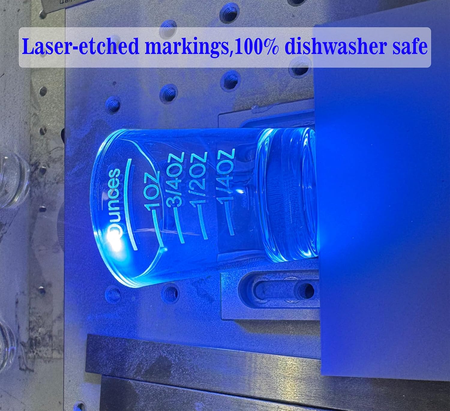 - EASY to READ and MEASURE:Laser-engraved markings—ounces (oz), milliliters (mL), teaspoons (tsp), and tablespoons (tbsp)—ensure effortless readability while remaining 100% dishwasher safe