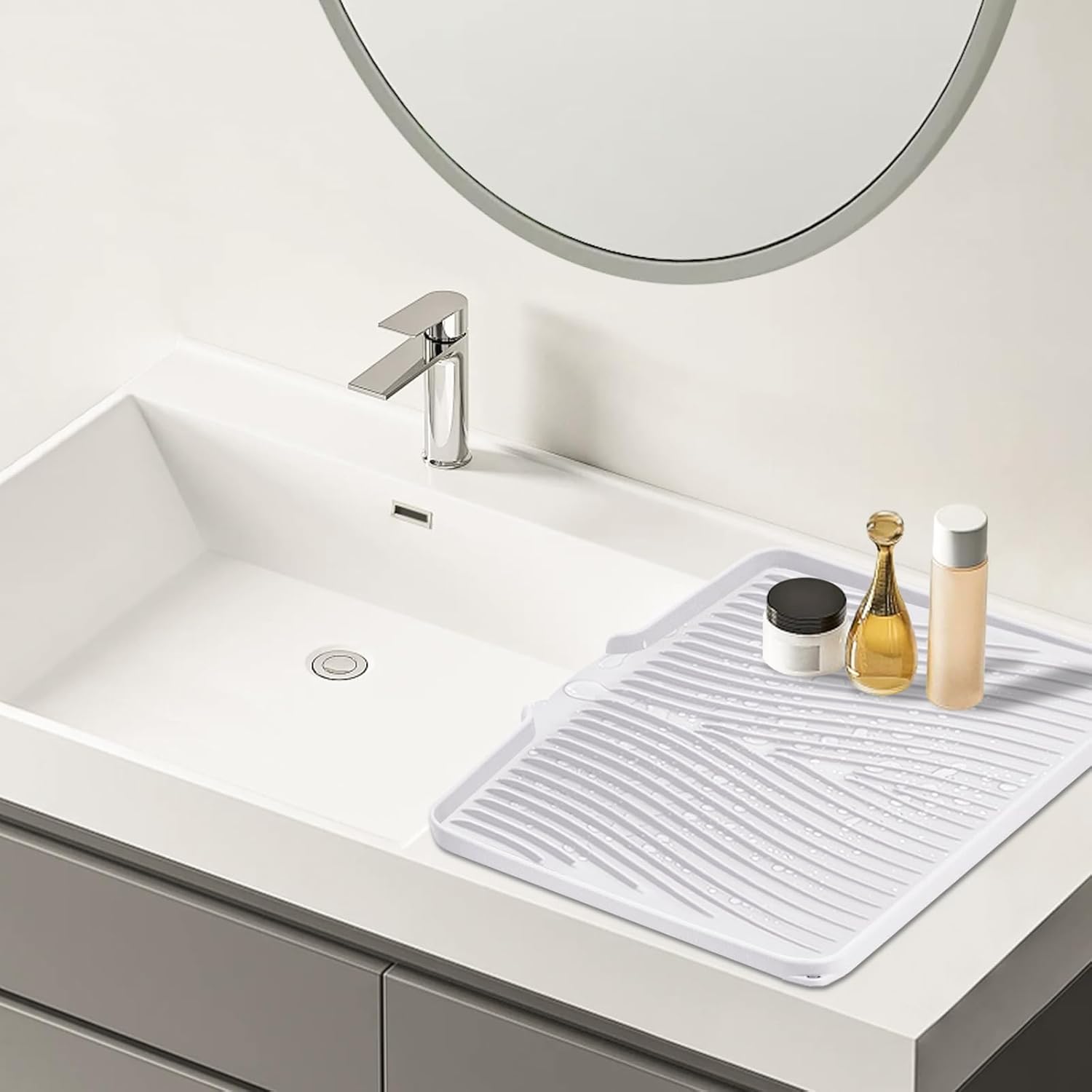 Silicone Dish Drying Mat, Stone Drying Mat for Kitchen Counter with Built-In Drain, Non-Slip Drying Matt Kitchen Counter, Heat Resistant Dish Drying Pad, 1 Pc (19.7" x 17",Ivory)