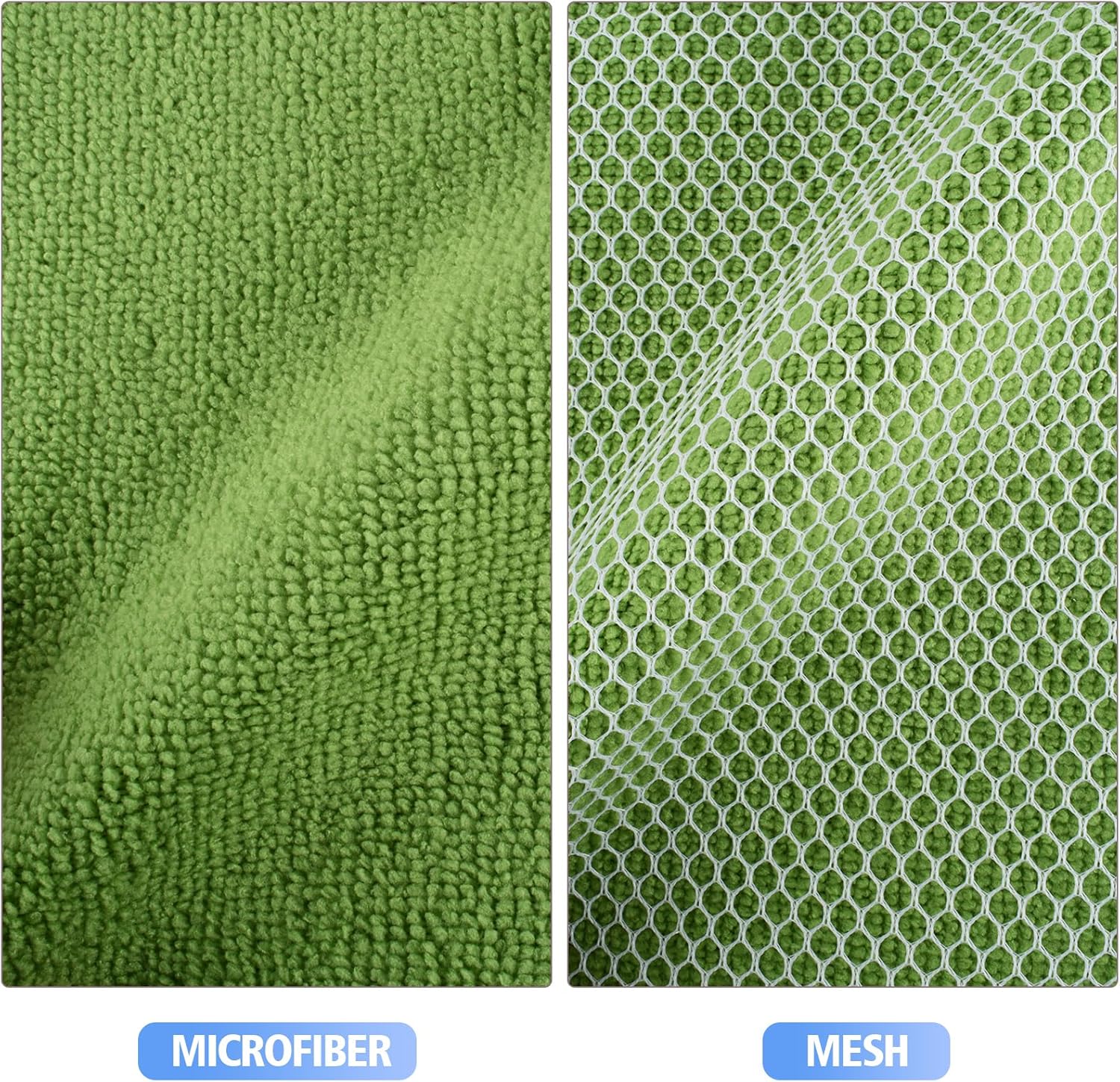 - DISH RAGS FOR KITCHEN CLEANING WITH POLY SCOUR SCRUBBING SIDE: One side is microfiber and the other side is mesh. The microfiber side works well at getting finger spots off the stainless steel appliances and the glass front of fridge or stove, microwave; the scrubby side is good for cleaning stuck on food without having to grab your scraper and does not scratch delicate surfaces either