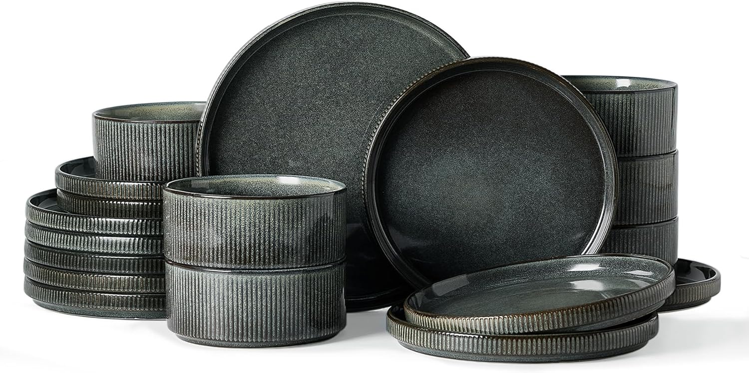 - [Stackable]: We are truly captivated by the design featuring vertical ribbed edges, but we also recognize the importance of optimal stacking. To address this, we have incorporated precision grooves at the base of this dish set, ensuring smooth and secure stacking