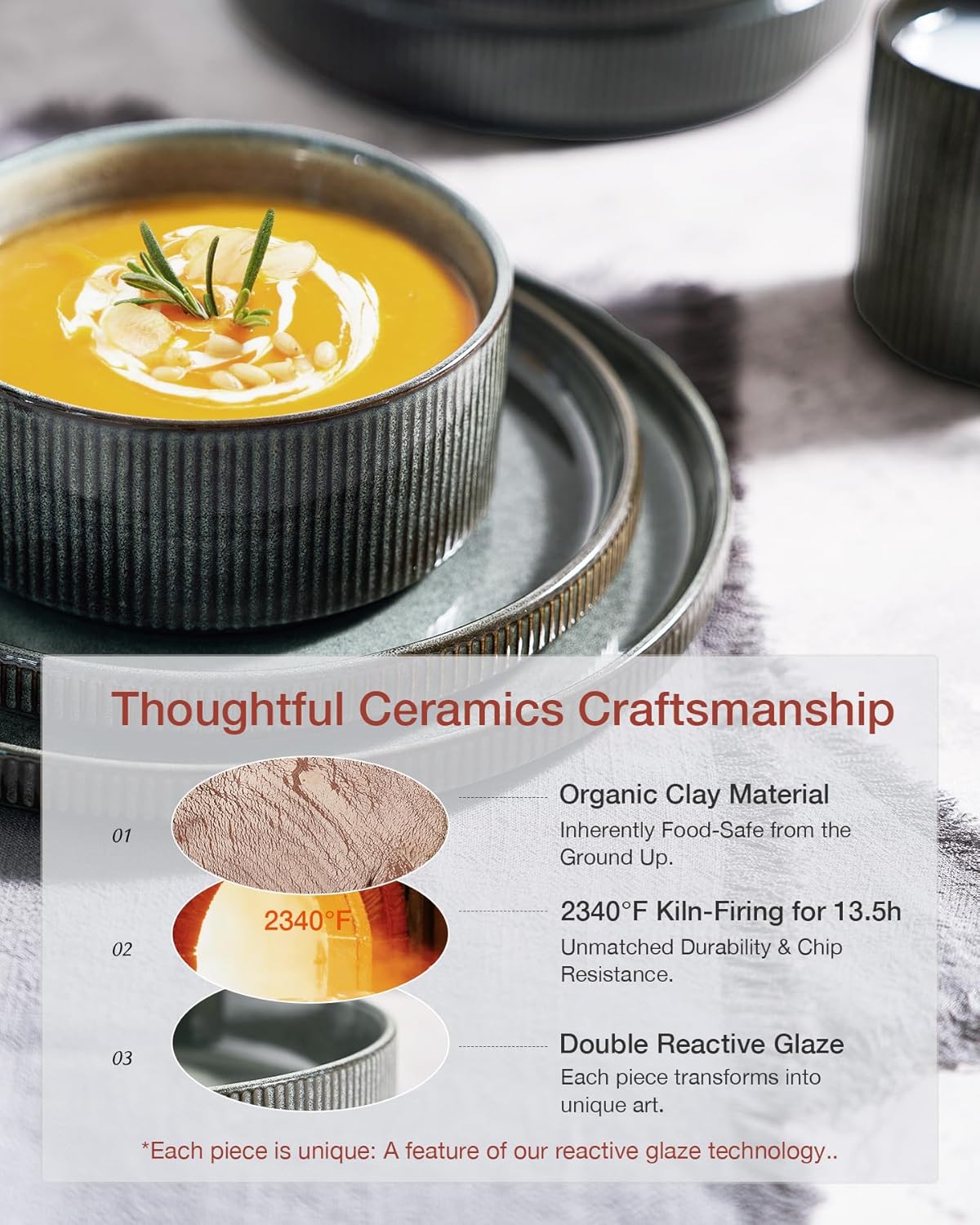 - [Premium Ceramic Durability]: Fired at 2340Β°F for 13.5 hours, our dishes boast impressive weight and thickness. They can resist chipping, scratching and daily wear, ensuring reliable kitchen use. Enjoy worry-free daily use, even with silverware