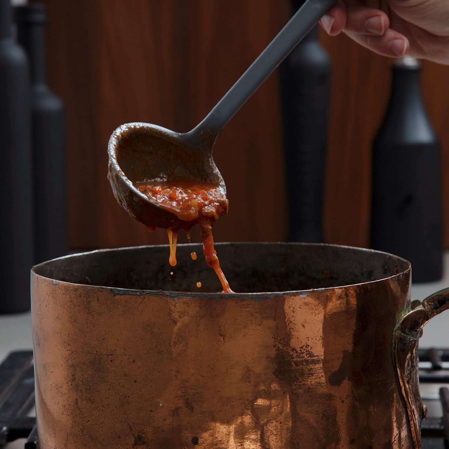 - Precision Pouring Ladle: The precision-edged Ultimate Silicone Ladle ensures no spills with its flexible front, perfect for scooping into any pot or pan's corners. Ideal for soups and more
