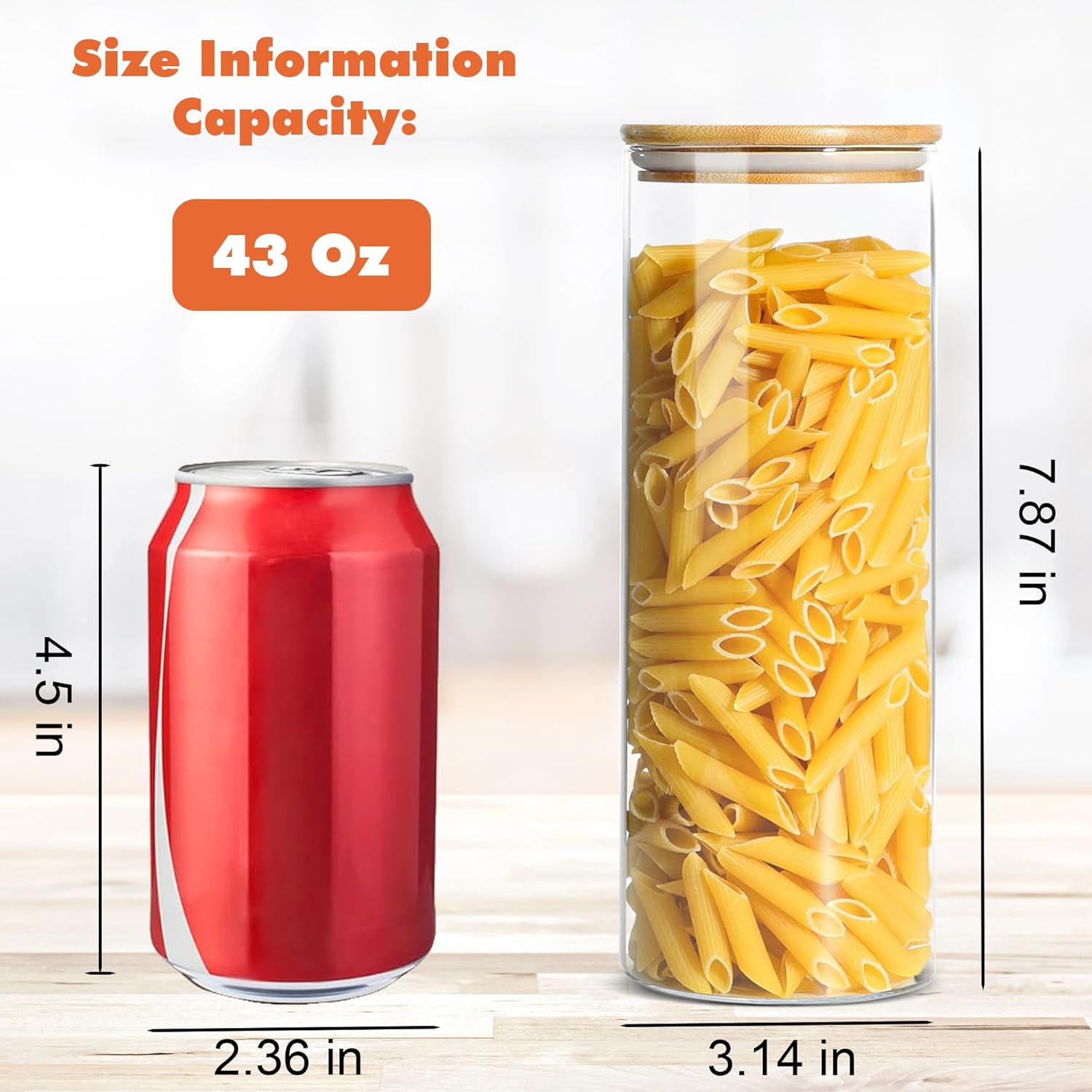 - 【Versatile Glass Storage Containers with Bamboo Lids】Elevate your kitchen organization with our stylish glass food storage containers with bamboo lids. Perfect for storing flour, sugar, coffee beans, snacks, cereals, pasta, or even bath salts and craft supplies. These multi-purpose glass jars with bamboo lids seamlessly transition from pantry essentials to elegant countertop displays.