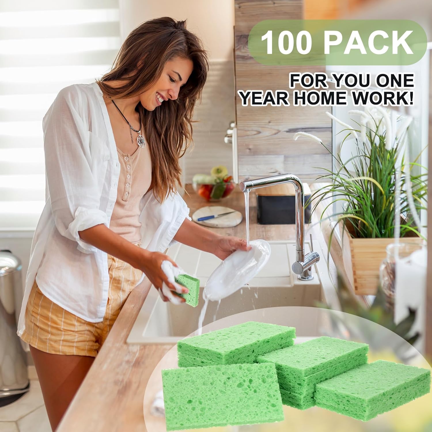 - Package Contents: you will receive 100 pieces of kitchen sponge in a package in green colors, enough for you to use and replace in daily life, and you can share with others