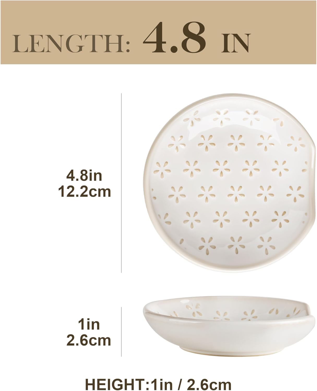 MALACASA Ceramic Spoon Rest for Stove Top, 4.8 inch Cooking Spoon Holder for Kitchen Counter,Utensil Rest for Ladle, Spatula, Spoons or Tongs, Modern Farmhouse Kitchen Décor - 01, Series LYDIA