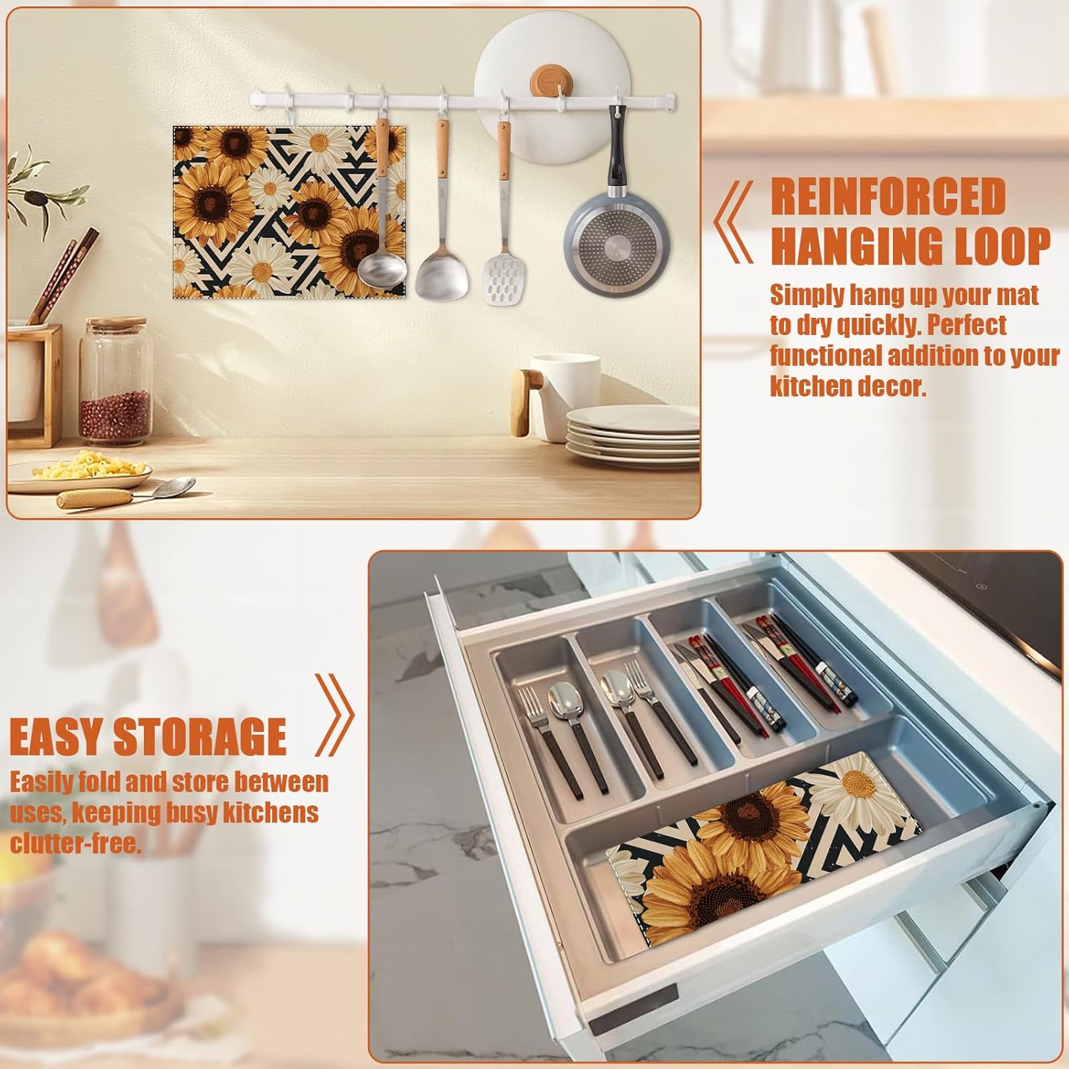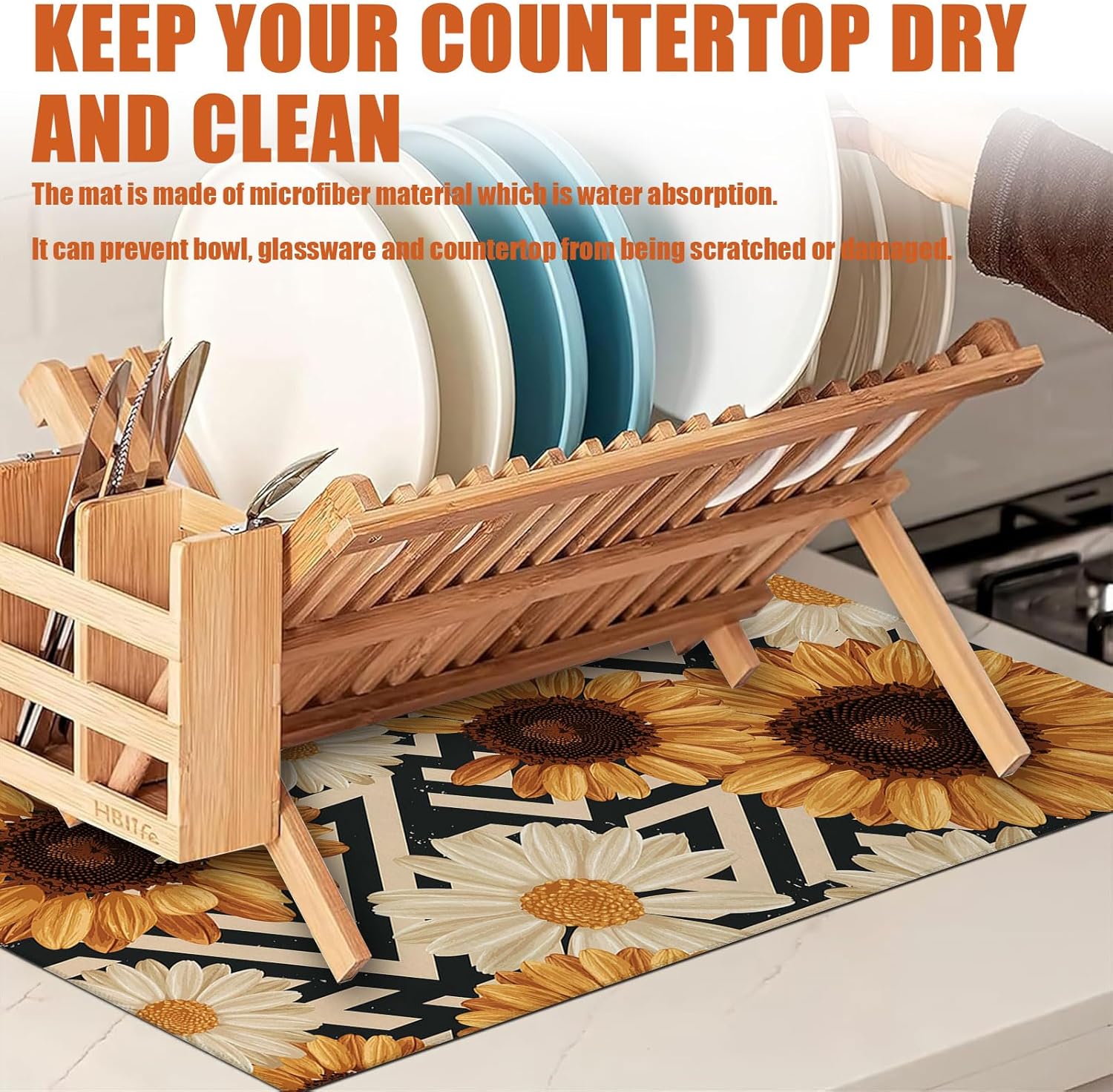 - 【Easy to Clean】The utensil drying mat can be cleaned by hand or machine to remove stains, the kitchen utensil drying mat to dry quickly without a machine. HD printed suede has excellent color lock, does not fade and can be reused many times.