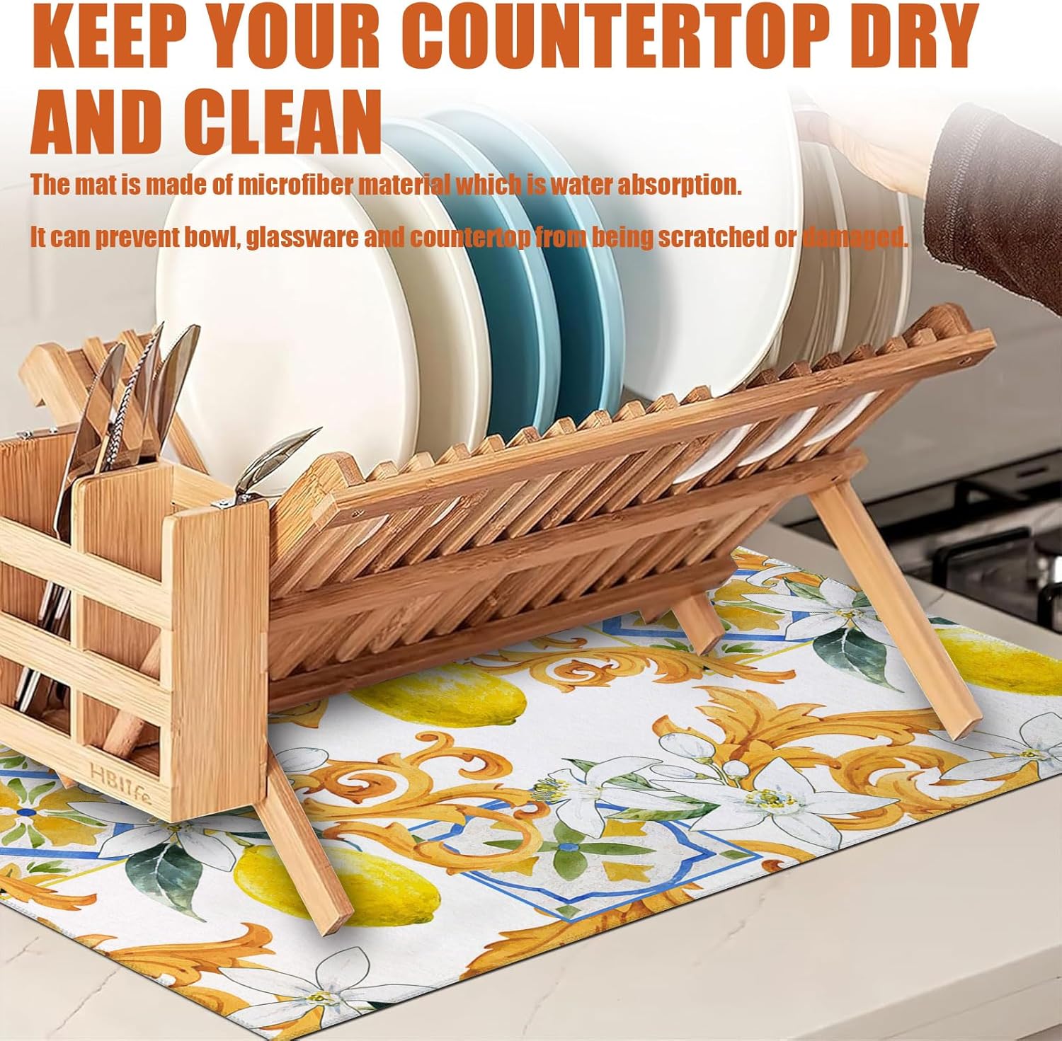 Watercolor Lemon Dish Drying Mat for Kitchen Counter Microfiber Absorbent Dish Kitchen Drying Mat Draining Reusable Washable for Dishes/Utensils/Counterto