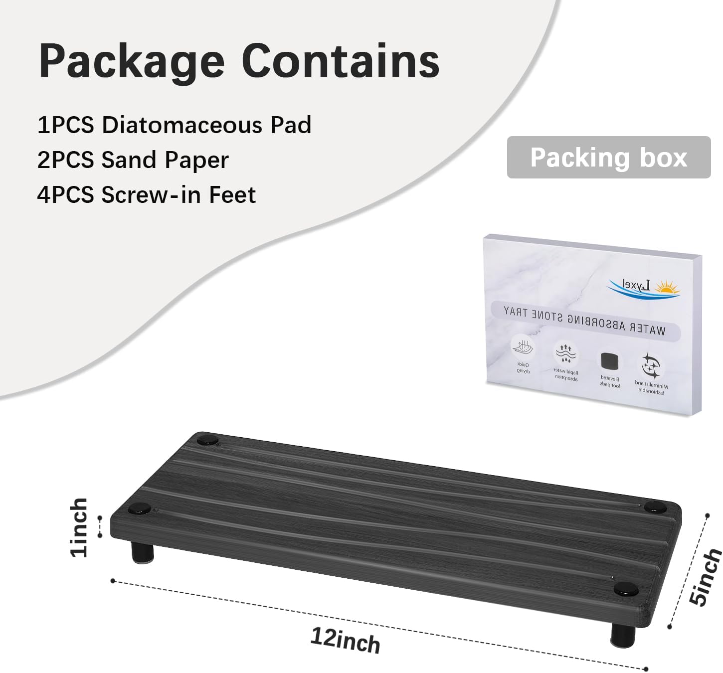 - Protect Countertop & Durable ---- This drying stone sink caddy can protect your countertop from scratches, stains, and rust. Keep the countertop dry and tidy. We also provide 2 pieces of sandpaper, When the diatomaceous earth stone drying tray needs maintenance, gently polishing and drying it can quickly restore its water absorption and ensure long-term use.