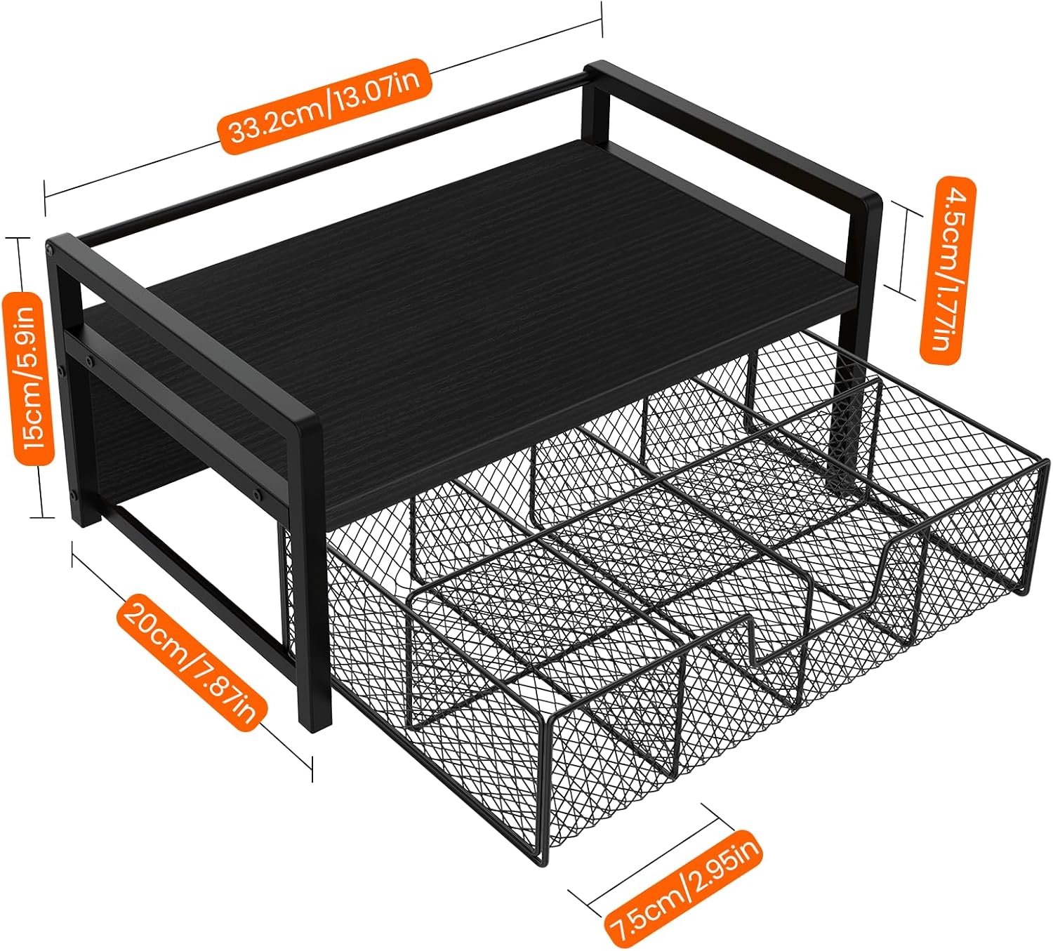 - Decorative Home Accent: The wood tea bag organizer features a sleek matte black metal frame paired with black wood grain, making it an ideal addition to any home decor. It adds a touch of sophistication to your kitchen, countertop, or tea station