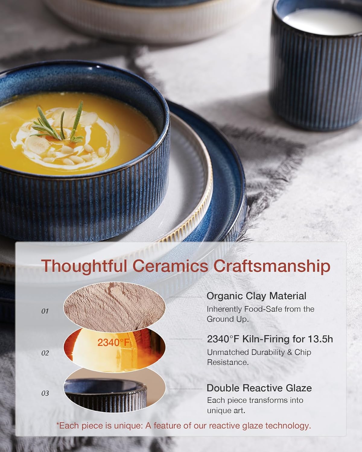 - [Handcrafted with artistry]: Each ceramic piece features a DOUBLE-REACTIVE GLAZE that creates unique, shifting, dreamy colors. This technique ensures every bowl and plate is one-of-a-kind, transforming dining into an artistic experience