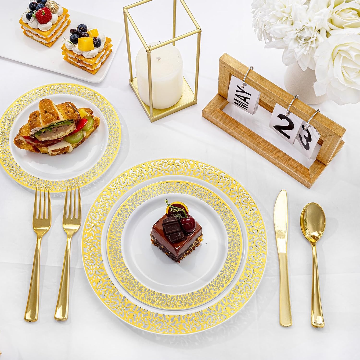 - Elegant Design: With gold lace rim design, these gold disposable plates will add a touch of sophistication to any party or event, making gold plates perfect for weddings, birthdays and other special gatherings.