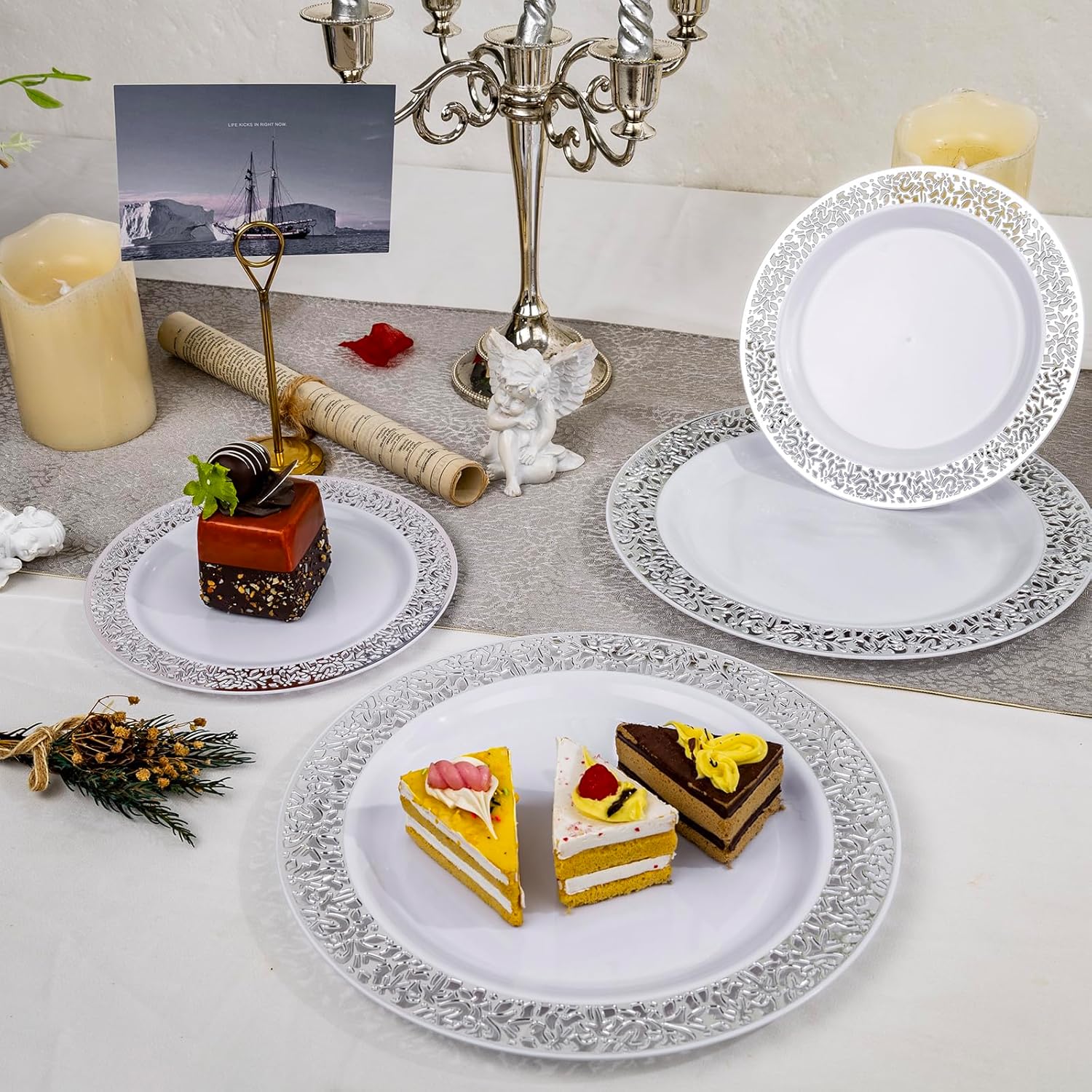 - Elegant Design: With silver lace rim design, these silver disposable plates will add a touch of sophistication to any party or event, making silver plates perfect for weddings, birthdays and other special gatherings.