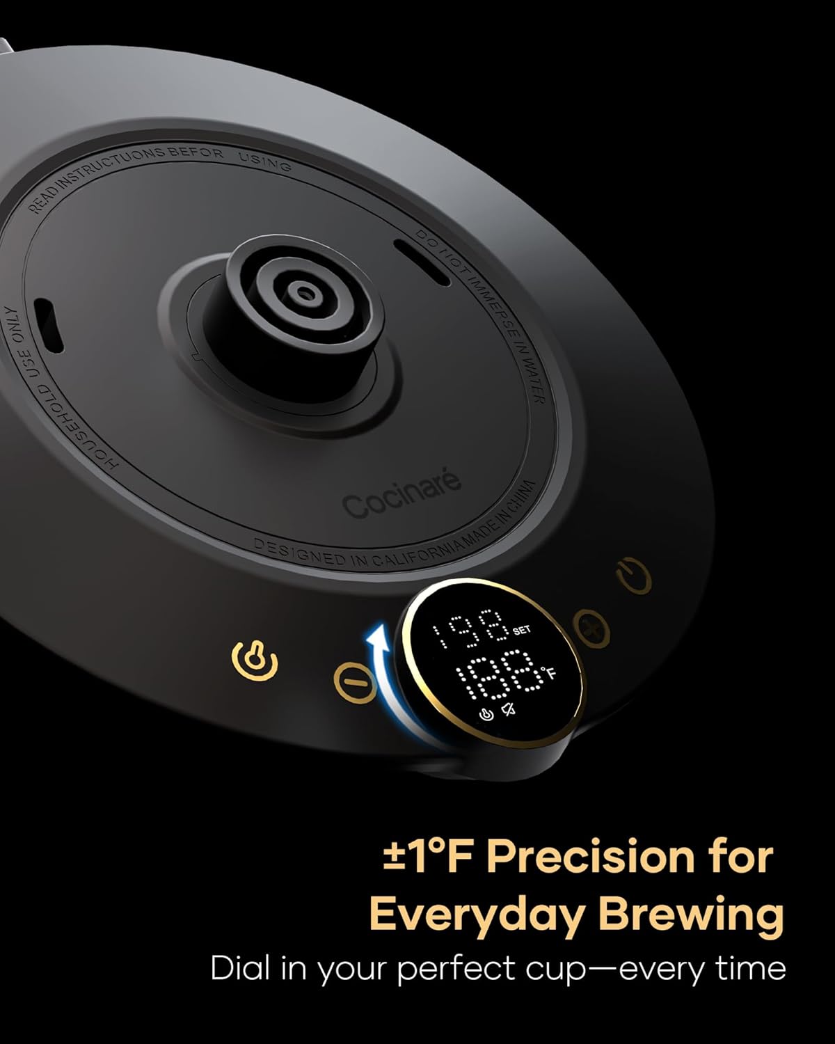 - Precision Heating & Pour Control: The intelligent base maintains your set temperature within ±1℉ for optimal extraction. The S-shaped spout delivers a steady, controlled pour - ensuring consistency in every cup.