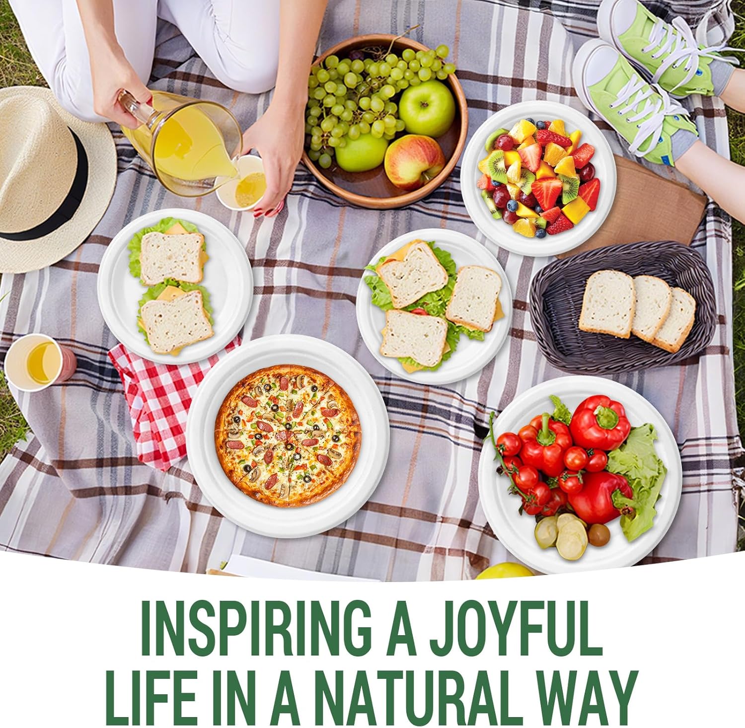 - What's Included: Compostable Paper plates set includes 25- 7" dessert plates and 25- 9" large dinner plates.