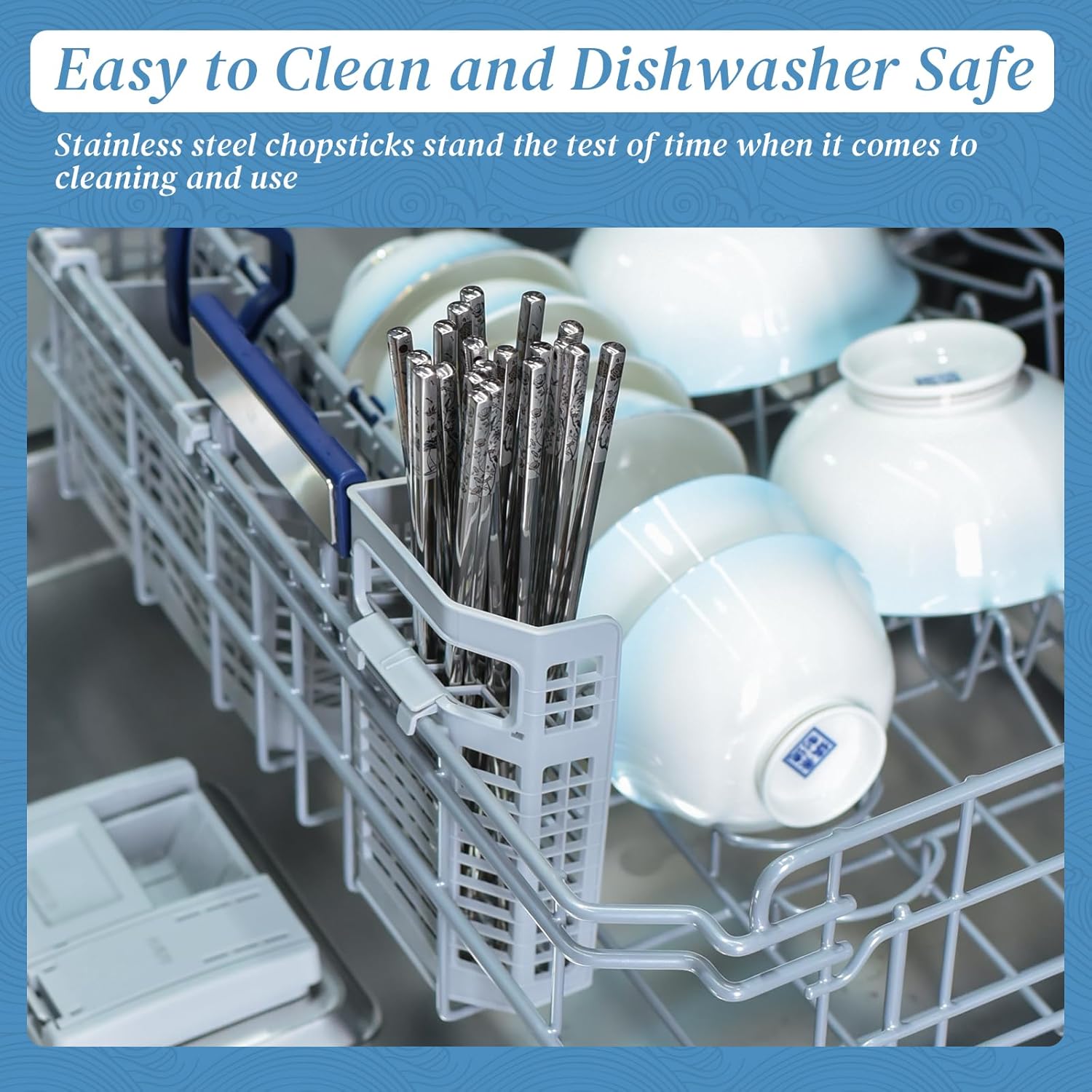 - Easy to Clean and Dishwasher Safe: Like other metal spoons, forks and other cutlery, our metal stainless steel chopsticks are dishwasher safe. Easy to clean, no special maintenance required. Reusable chopsticks that you don't have to worry about damaging during use or cleaning. These metal reusable chopsticks can withstand high temperatures during cooking, cleaning and normal use. Stainless steel chopsticks are virtually indestructible compared to those fragile wood and fiberglass chopsticks.