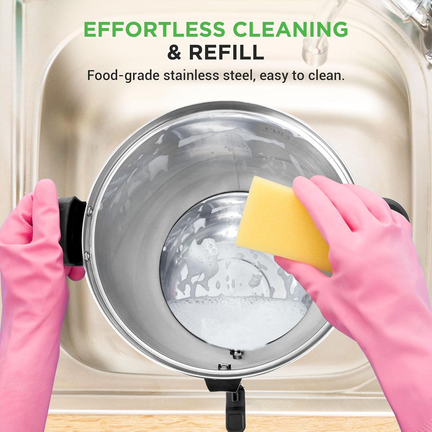 - SIMPLE TO CLEAN AND REFILL - Designed for effortless maintenance, this drink dispenser for parties features a stainless steel inner pot for quick cleaning. Its compact size and efficient functionality make it a must-have for home or professional use.