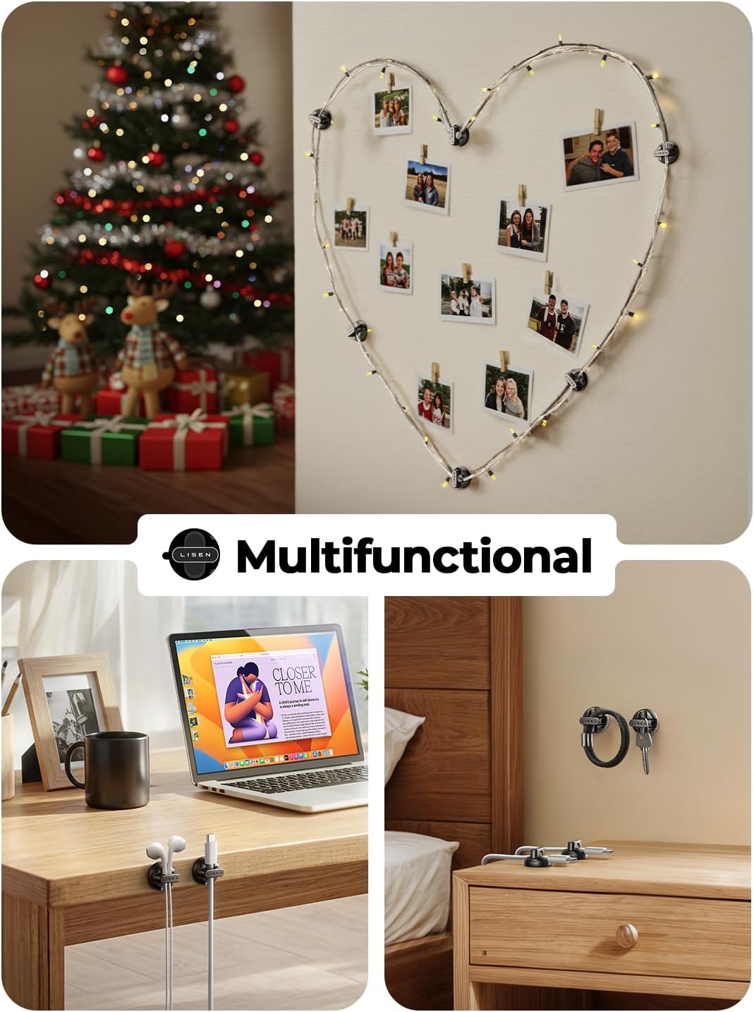 - Cable Clips for Easy One-Handed Use: LISEN office desk accessories offer a unique magnetic opening and closing mechanism, making it easy to place or remove cables with just one hand. Unlike ordinary cord holders, the 60Β° rotating shaft and magnetic locking system allow you to quickly grab or add a cord in seconds, ensuring convenience and efficiency