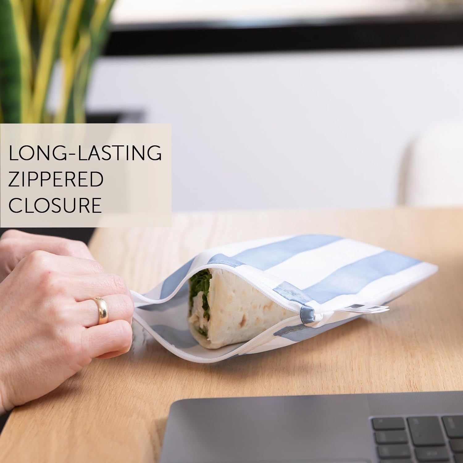 - REUSE AND REDUCE WASTE β Made from our original waterproof food-safe fabric with zipper closure; sandwich bags are large enough to fit a bagel; not just for lunch, bags make great organizers for storage and travel; stash inside lunch, purse or travel bag