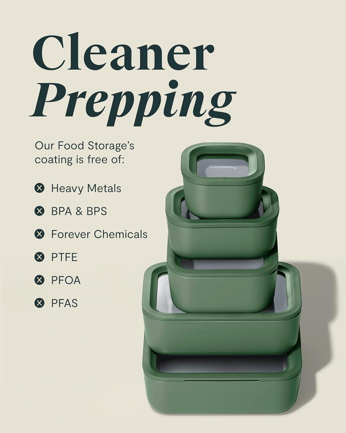 - KEEP YOUR FOOD FRESH: Look forward to leftovers with Caraway’s easy-to-store, non-toxic food storage containers. This set looks great and most importantly keeps your food extra fresh and organized.