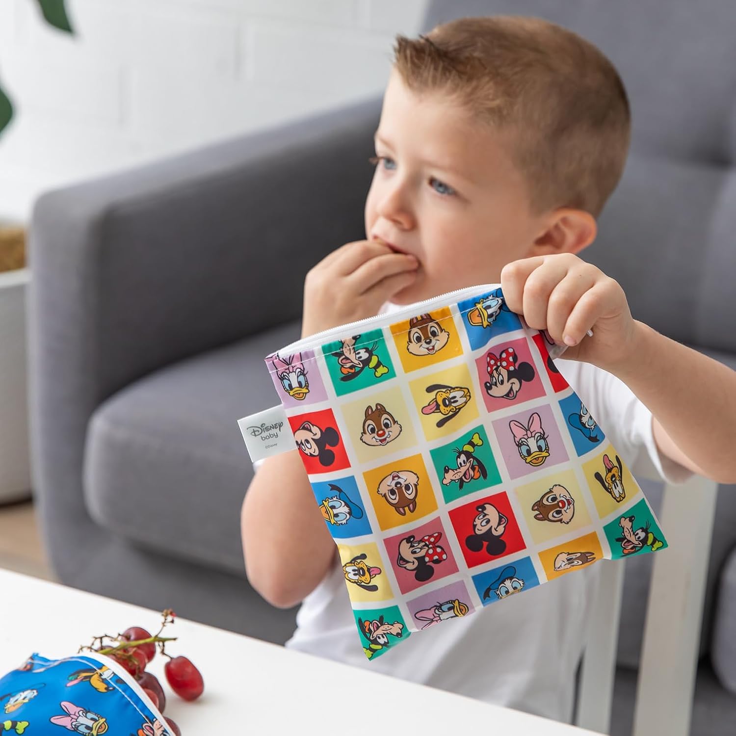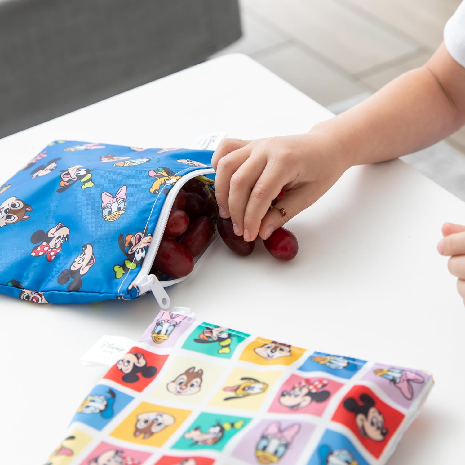 Bumkins Disney Reusable Sandwich and Snack Bags, for Kids School Lunch and for Adults Portion, Washable Fabric, Waterproof Cloth Zip Bag, Travel Pouch, Food-Safe Storage, 4-pack Set Mickey and Friends