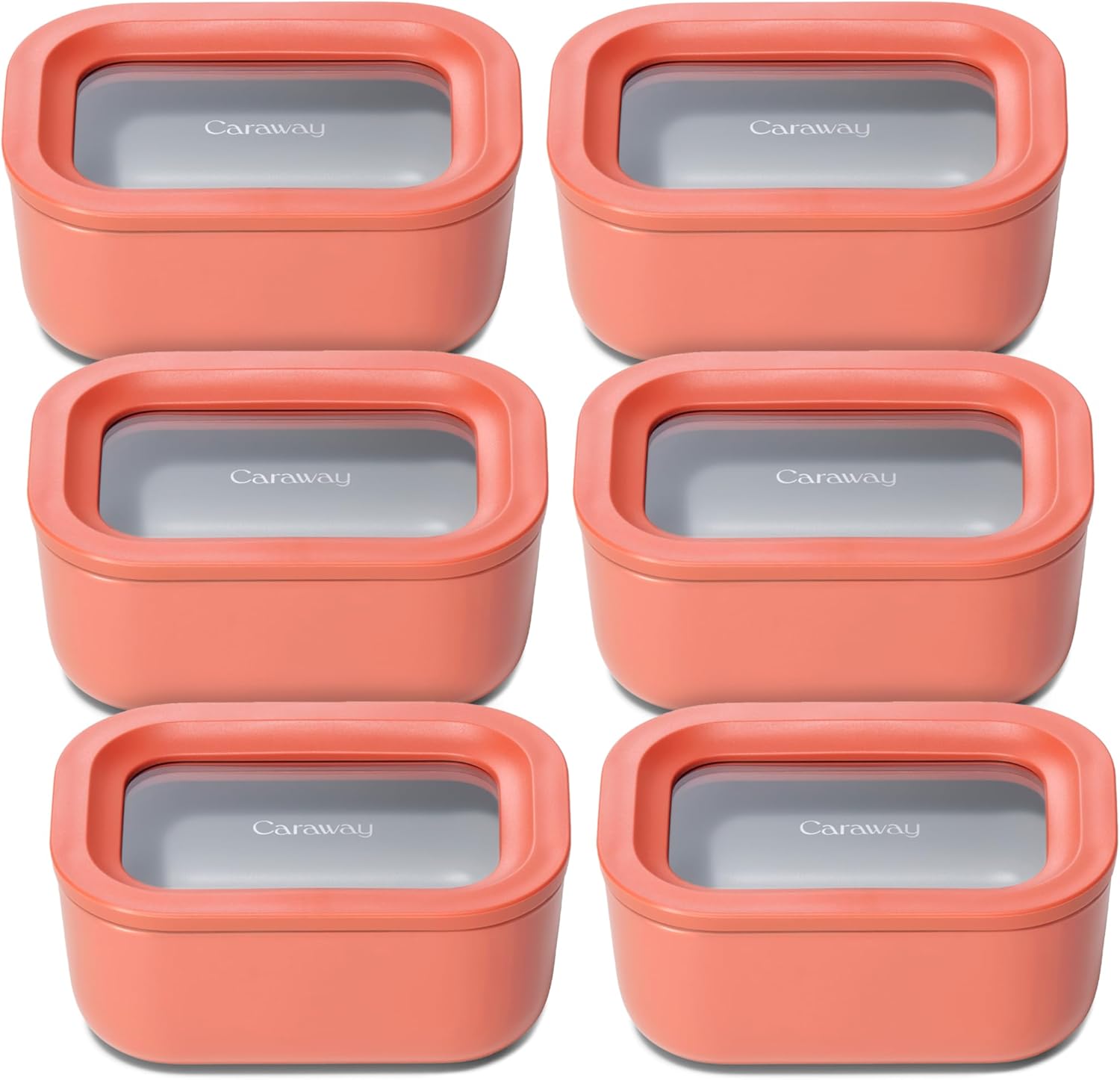 Caraway 6pc Glass Food Storage Set - 2.6 Cup Storage Containers For Food (6) - Non-Toxic Ceramic-Coated Glass - Air Release Technology - Compact & Stackable Design - Perracotta