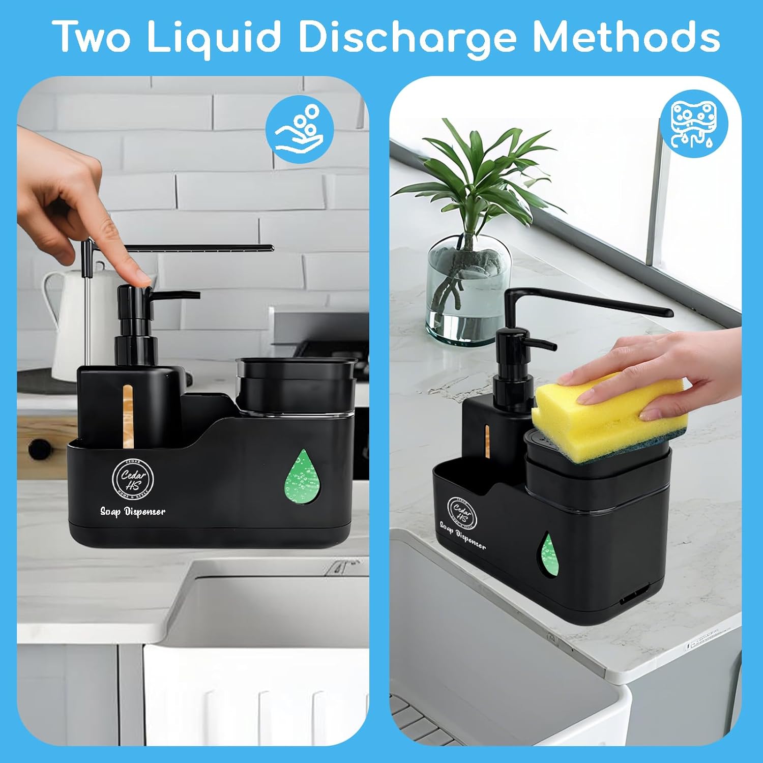 - Dual-Capacity Design – Holds 400ml and 380ml bottles for versatile use with liquid soap, lotion, or dish soap – perfect for kitchens and bathrooms.