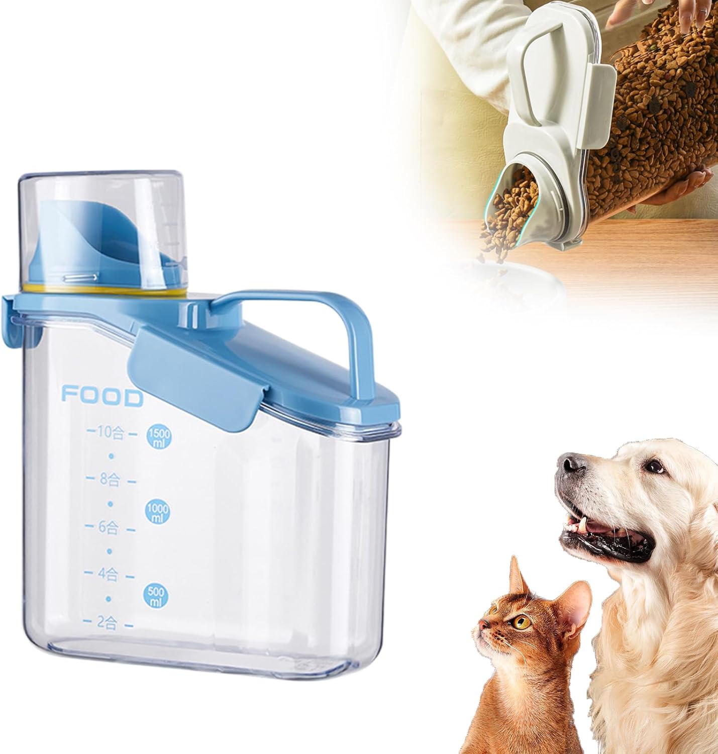 - 【Large Pouring Spout & Measuring Cup】Our portable food container features a bigger spout making it a breeze to dispense your food even with large particles. (The other brand pouring spout is small and pour dog food or other large particles of food get stuck). Comes with a measuring cup which is easy to screw on the spout, to keep your food fresh and dry.