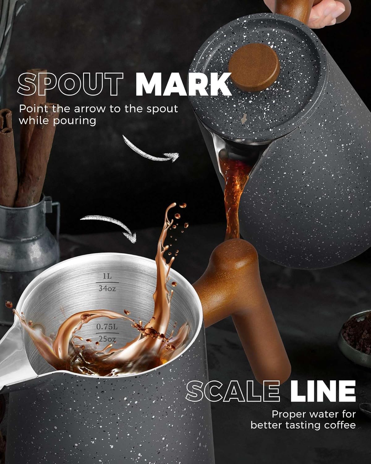 POLIVIAR French Press Coffee Maker, 34 oz Coffee Press with Real Wood Handle, Double Wall Insulation & Dual-Filter Screen, Food Grade Stainless Steel for Good Coffe and Tea, JX2025-XFPG