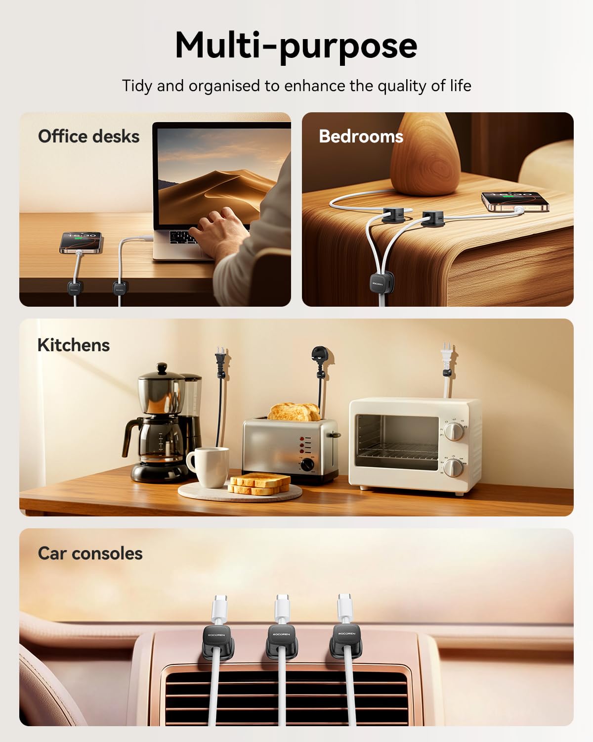 - Innovative Spring Locking Mechanism: Cord organizer adopts a 60Β° rotatable magnetic axle center + enhanced magnetic structure, and can quickly snap in/release the cable with one hand, suitable for office desks, bedside tables, car-mounted scenarios,nightstand etc. The cable clips magnetic lock is stable and prevented from falling off, 1s Lock saying goodbye to the trouble of repeated adjustments of traditional wire clips