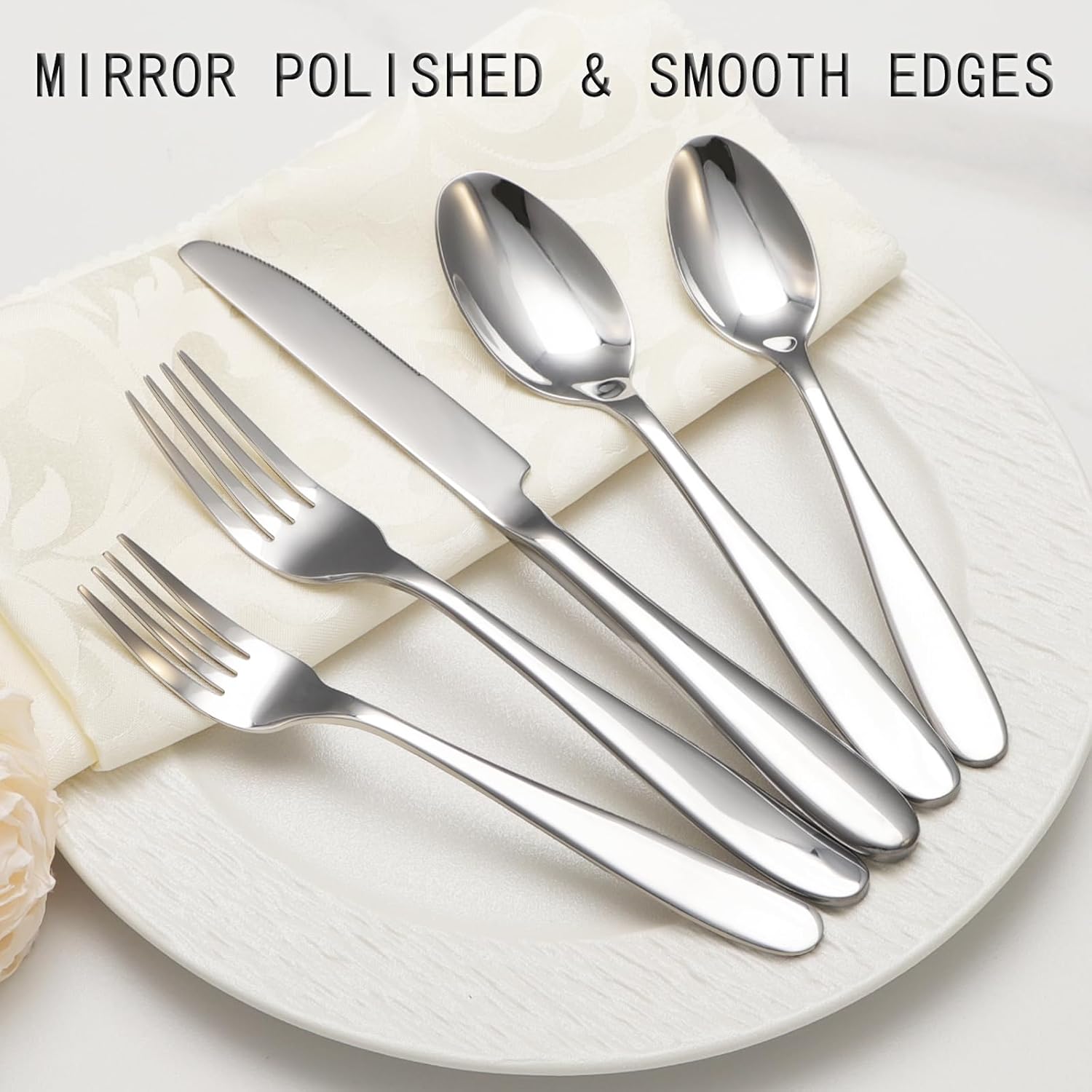 - Elegant Design: This is a very modern art style silverware set, clean lines, highly mirror polished, smooth edges, free of rough spots and edges, unique and elegant appearance would match well with your existing eating utensils, enhance your dining experience.