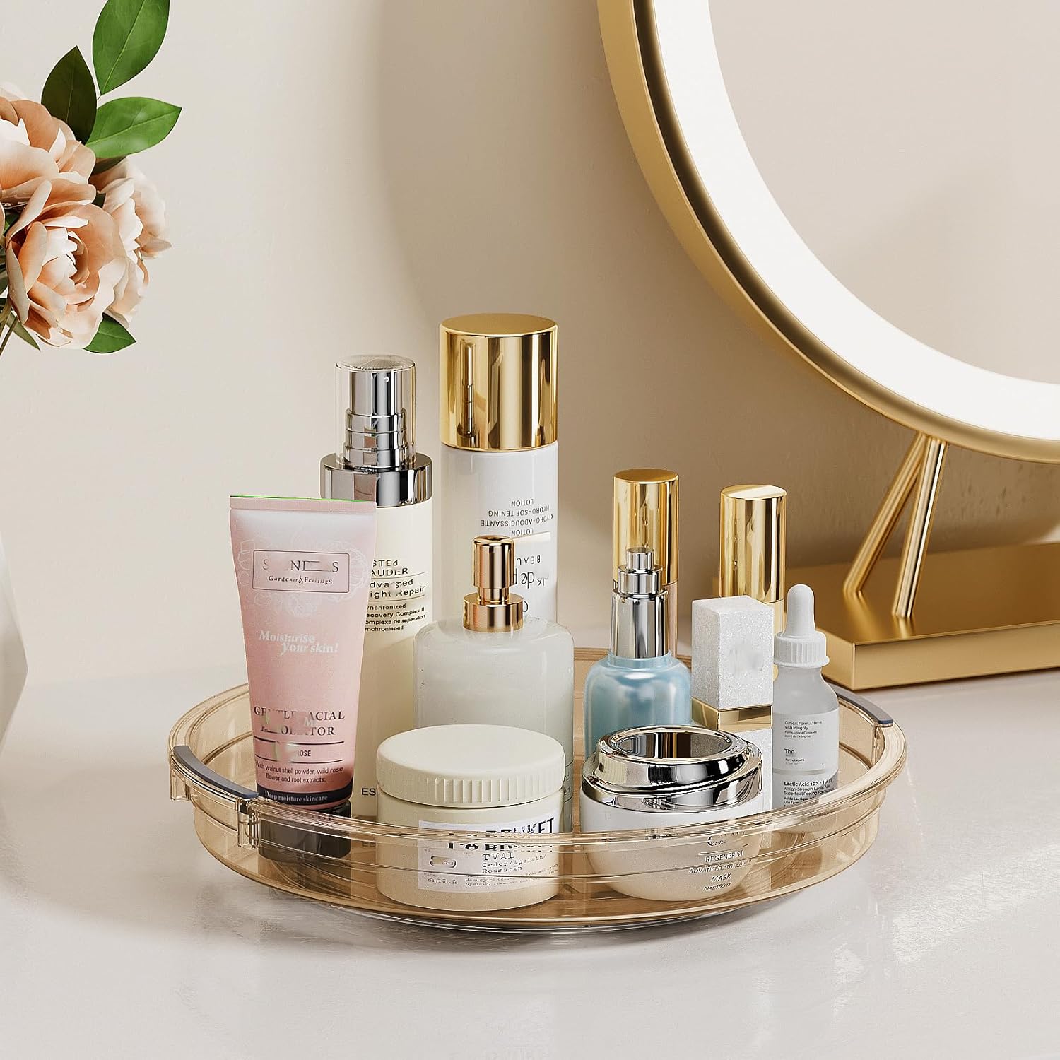 - Versatile Use and Space Saving: This Lazy Susan turntable is great for cabinet, kitchen countertop, fridge and pantry organizers and storage spices, condiments, snacks, cans. It's also a medicine cabinet organizer, bathroom makeup perfume spinning organizer. Elevates the functionality and efficiency of every space