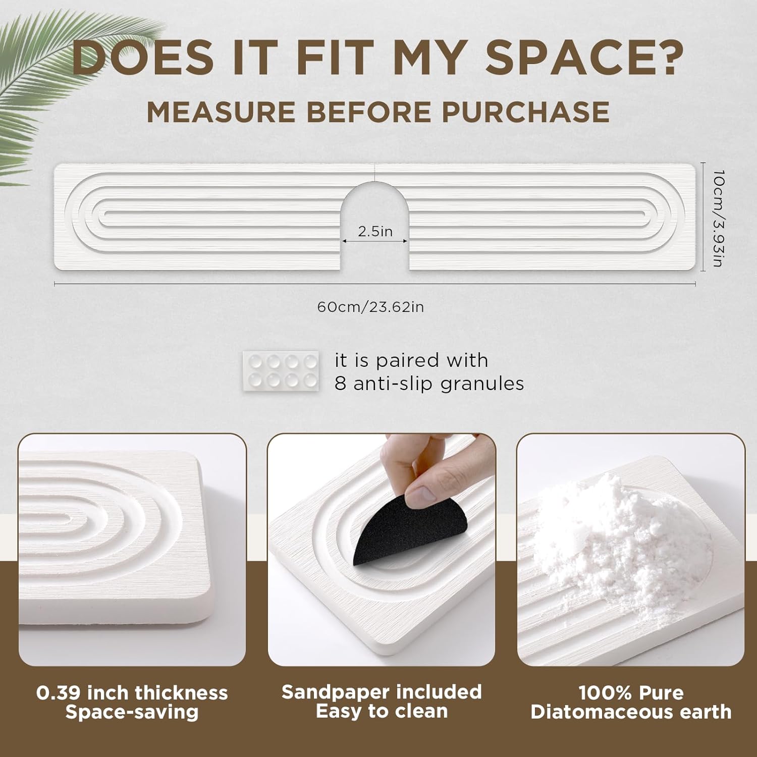 - ๐๐๐๐ & ๐๐ซ๐๐ฆ๐ข๐ฎ๐ฆ ๐๐๐ญ๐๐ซ ๐๐๐ฌ๐จ๐ซ๐ฉ๐ญ๐ข๐จ๐ง: Crafted from 100% natural, odorless, and non-toxic diatomaceous earth, this mat features millions of micropores that rapidly absorb and evaporate moisture. Safe for all ages and free from harmful chemicals, it keeps your sink area clean, dry, and protected from water stains or damage.