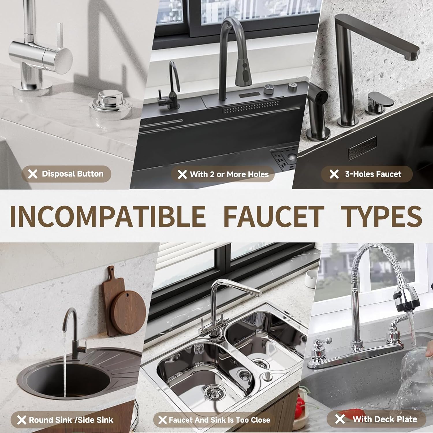 - ๐๐๐๐จ๐ซ๐ ๐๐ฎ๐ซ๐๐ก๐๐ฌ๐ข๐ง๐ : Depending on the size of the product, make sure there are no sink buttons or dispensers around the faucet and sink. Faucet base must be less than 2.5โ in diameter. | Size: 23.6โ x 3.9โ or 15.7โ x 3.9โ with 2.5โ U-holes to fit more faucets. Non-cutting hardstone sink mat