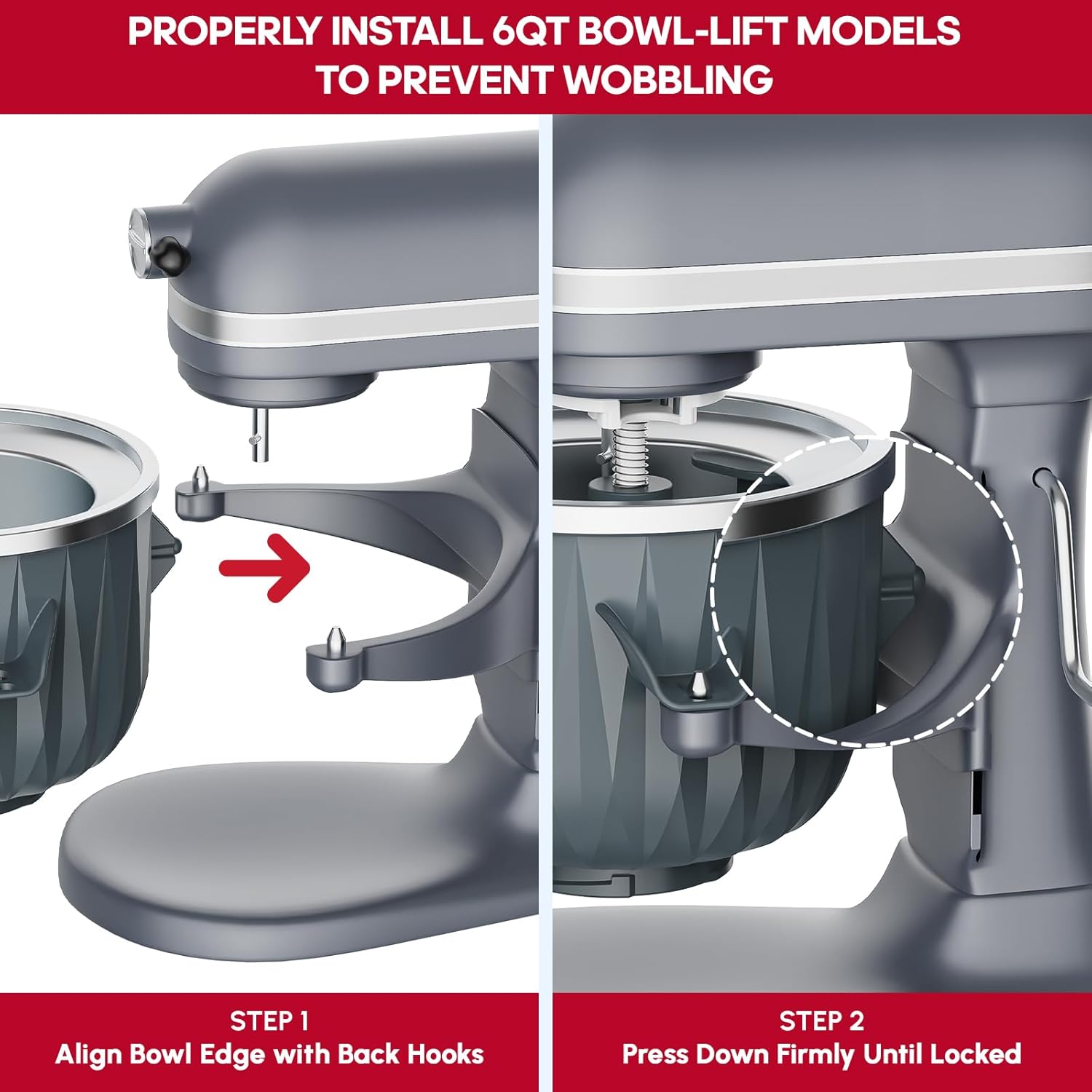 - EASY INSTALL: This kitchen aid mixer attachments with a ice cream bowl, dasher and drive assembly. The drive assembly port A is fit for 4.5-5QT Tilt-Head stand mixers, the port B fit for 6QT or larger Bowl-Lift mixers. IMPORTANCE: To install this kitchenaid ice cream attachment for kitchenaid 6QT bowl-lift mixer, please align bowl edge with back hooks first, then press down firmly until locked. Will prevent the ice cream bowl wobbling.