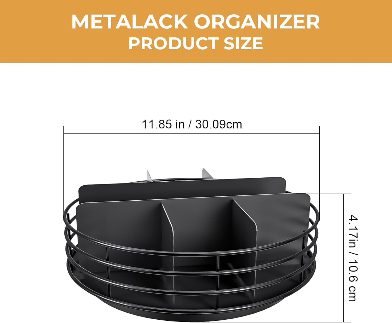Snack Organizer - Versatile Snack Storage, Lazy Susan with Convenient Grab-and-Go Design, Metal Snack Holder for Home, Office, Breakroom, 11.85" L x 11.85" W x 4.17" H (Matte Black)