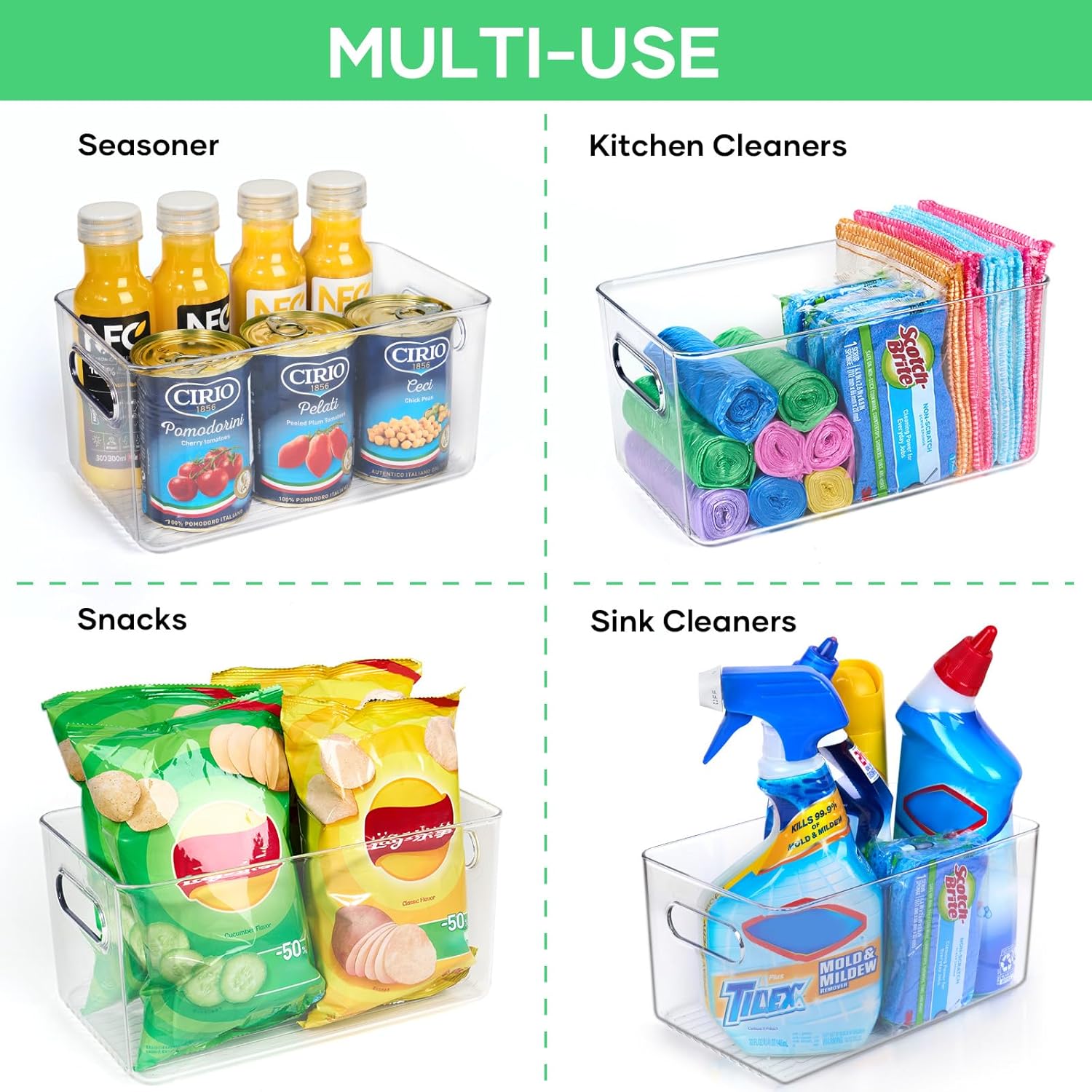 8 Pack Clear Plastic Storage Bins, 11" Large Pantry Organizer Bins with Handles, Plastic Containers for Refrigerator,BPA-Free Perfect for Kitchen,Fridge,Cabinet,Pantry,Bathroom,Closet Organization
