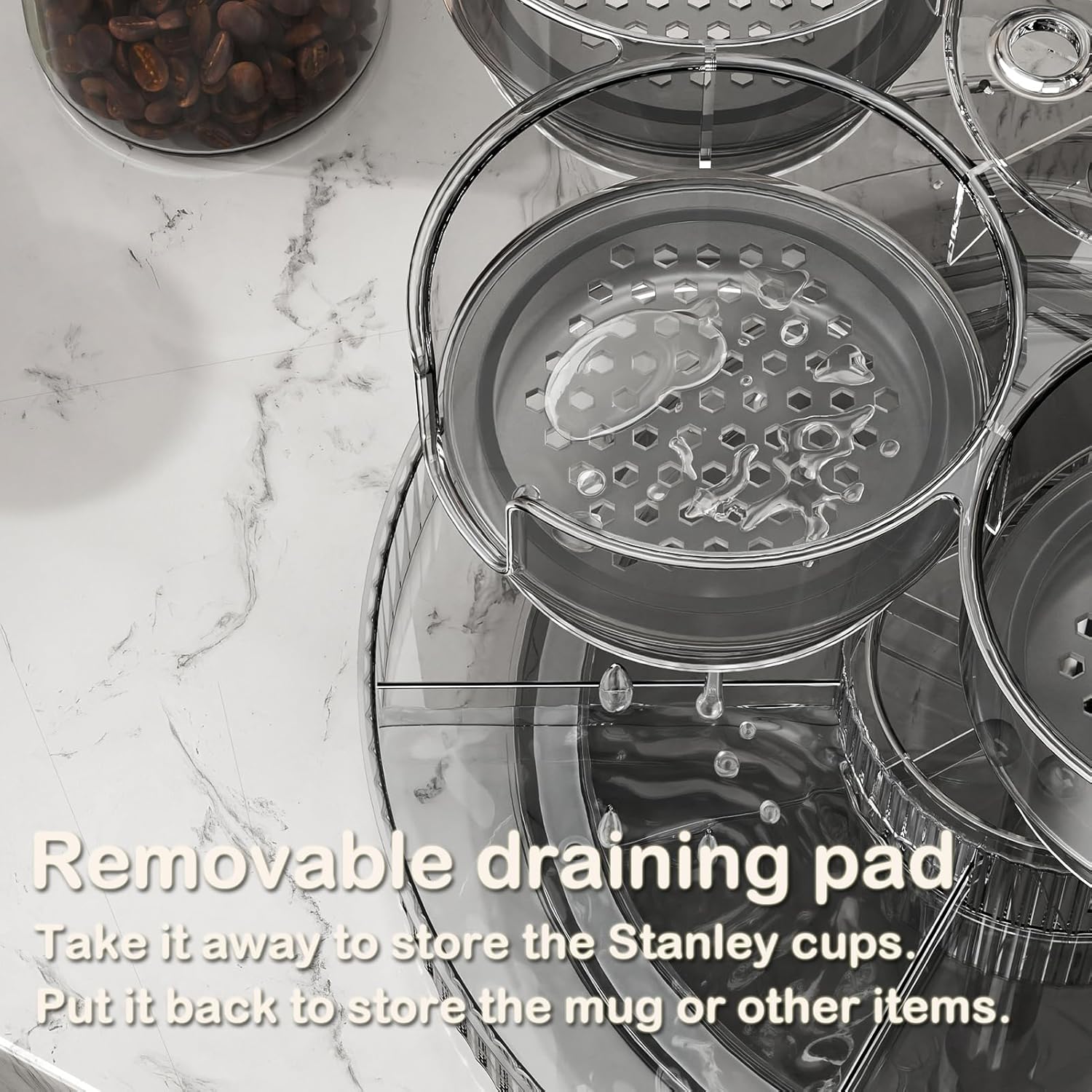 - Rotating Stanley Cup Holder, Portable Water Bottle Organizer for 6 Stanley 40 oz & Mug, Adjustable Lazy Susan Organizer for Table Top Cabinet Home Countertop Pantry Shelf Tumbler Lid Organizer