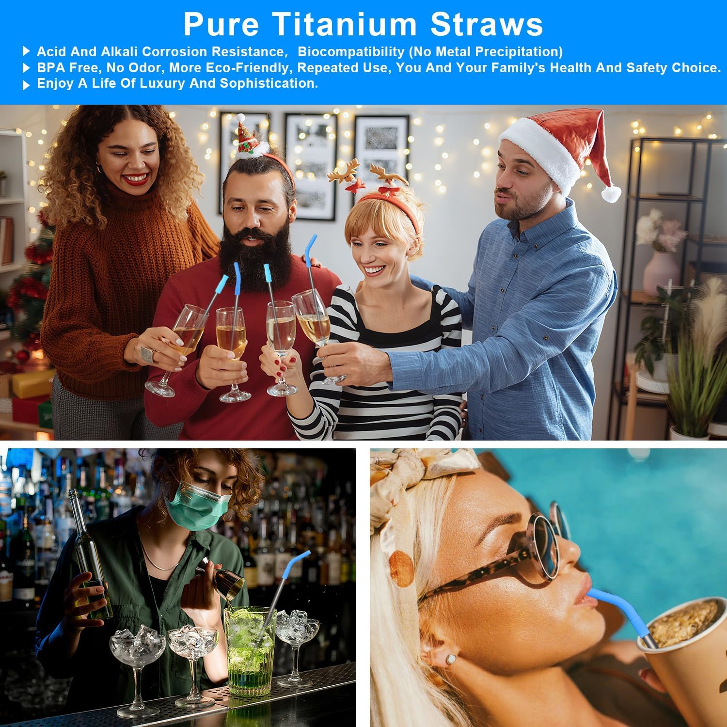 - HIGH-QUALITY NATERIAL: reusable metal straws made of Medical Grade Pure Titanium,acid and alkali corrosion resistance and biocompatibility (no metal precipitation),lightweight,hand-washable, can be put into the dishwasher to wash, is the best alternative to disposable straws of cyclicity products,BPA free, no odor, more Eco-friendly, you and your family's health and safety choice, especially suitable for people with sensitive constitutions